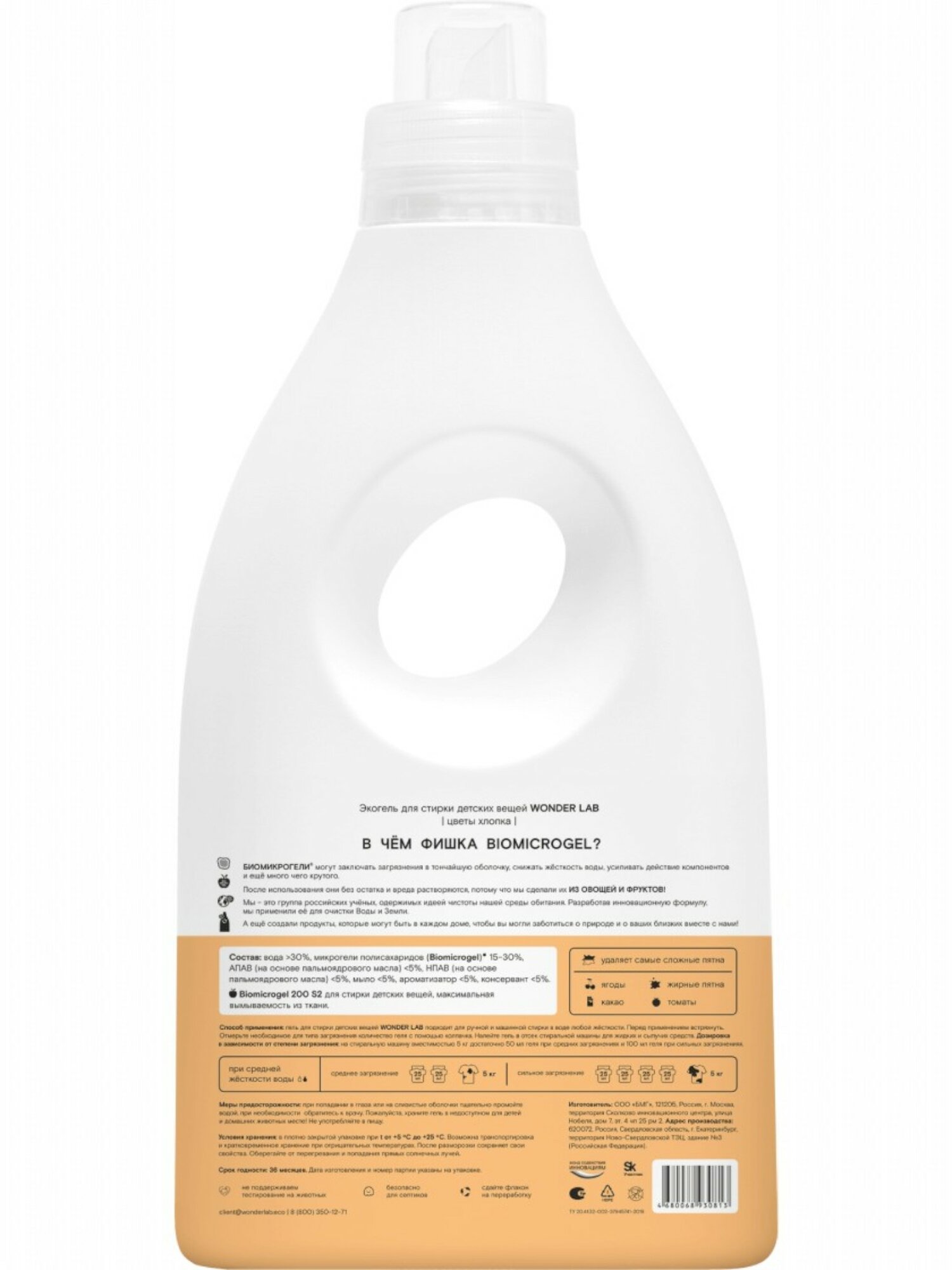 WONDER LAB ЭкоГель для стирки детских вещей Цветы Хлопка, 1,4лЮ 2 ШТ