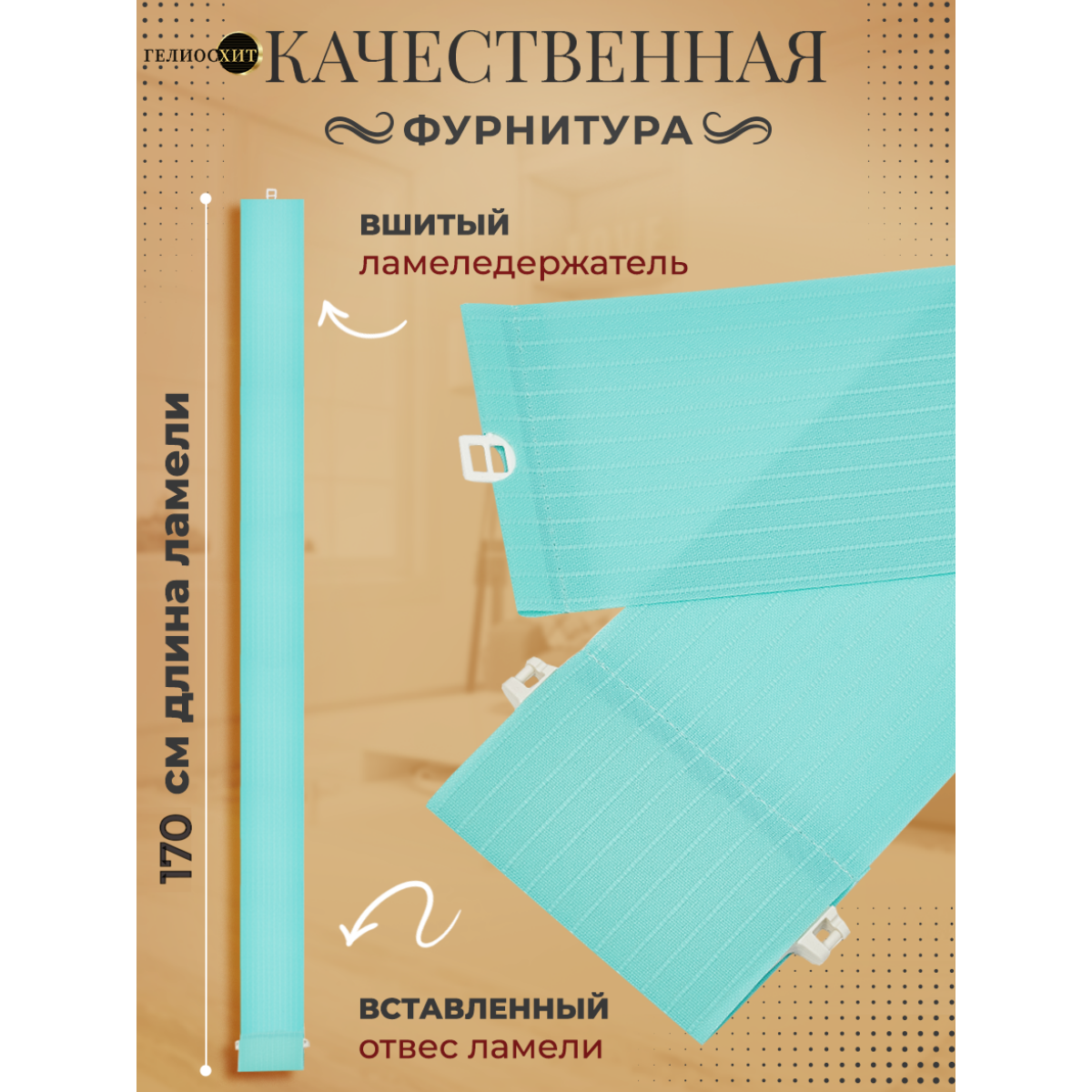 СохранитьЛамели для вертикальных жалюзи 10 шт высотой 170 см бирюзового цвета, карниз приобретается отдельно, гелиосхит. интересное: