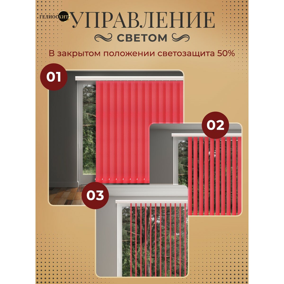 СохранитьЛамели для вертикальных жалюзи 10 шт высотой 170 см красного цвета, карниз приобретается отдельно, гелиосхит. интересное: