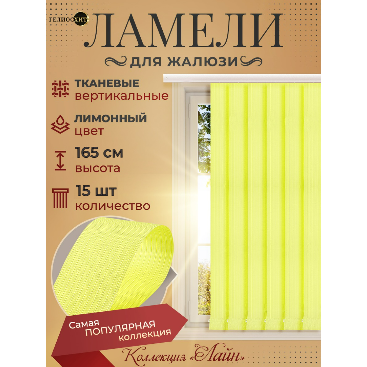 СохранитьЛамели для вертикальных жалюзи 15 шт высотой 165 см лимонные, ткань Лайн, гелиосхит, карниз приобретается отдельно. интересное: