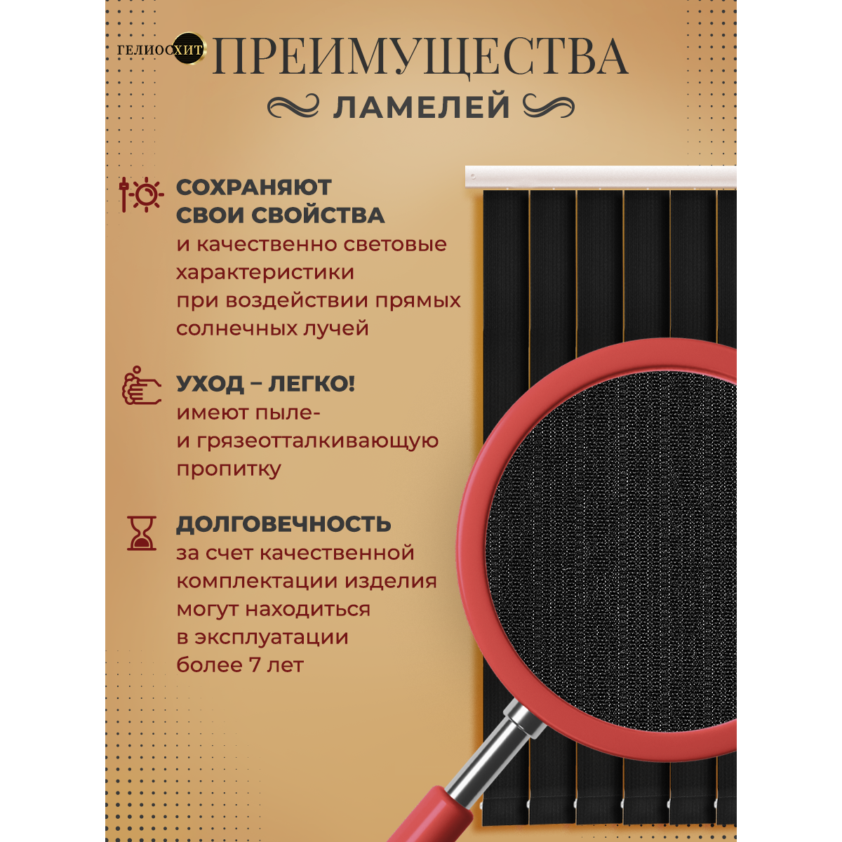 Ламели для вертикальных жалюзи 10 шт высотой 175 см черные, ткань Лайн, гелиосхит, карниз приобретается отдельно.