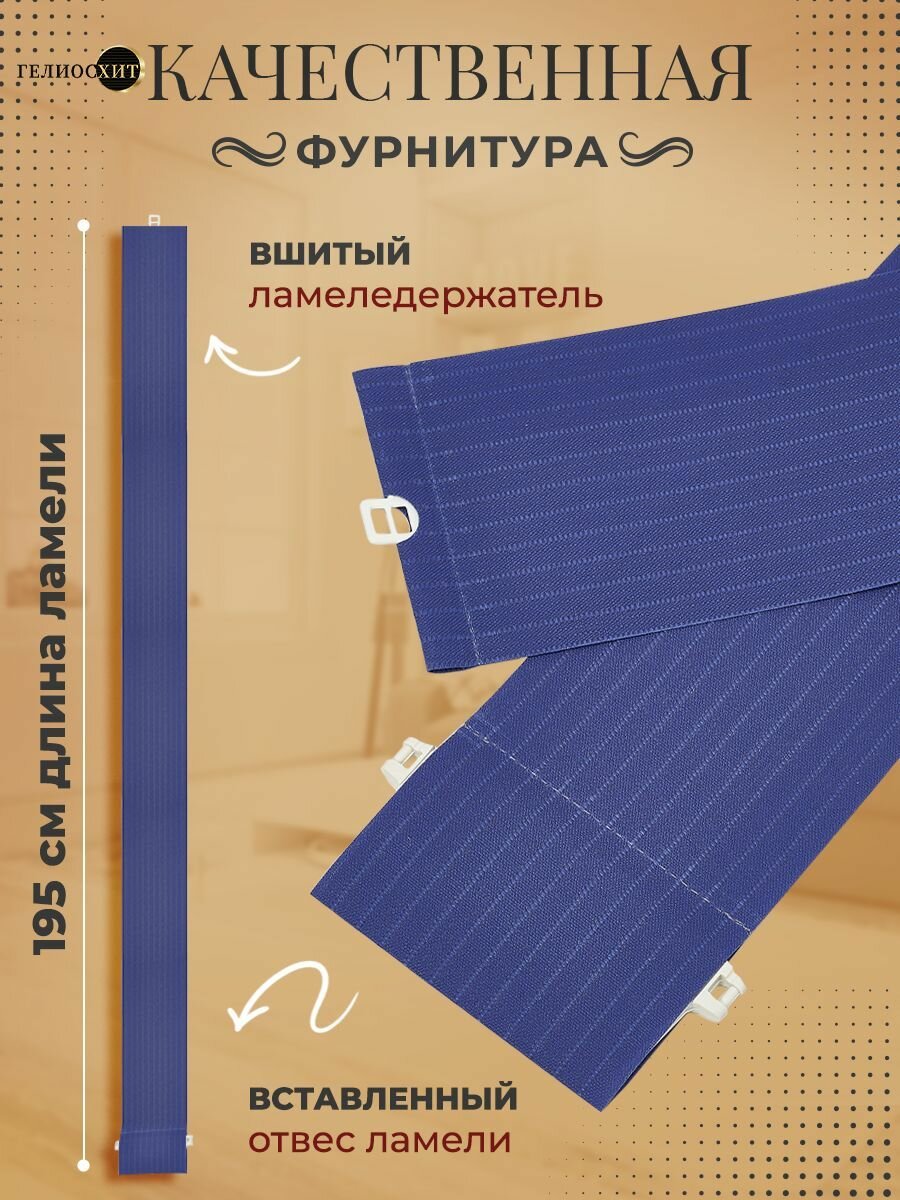 СохранитьЛамели для вертикальных жалюзи 10 шт высотой 195 см темно-синего цвета, карниз приобретается отдельно, гелиосхит. интересное: