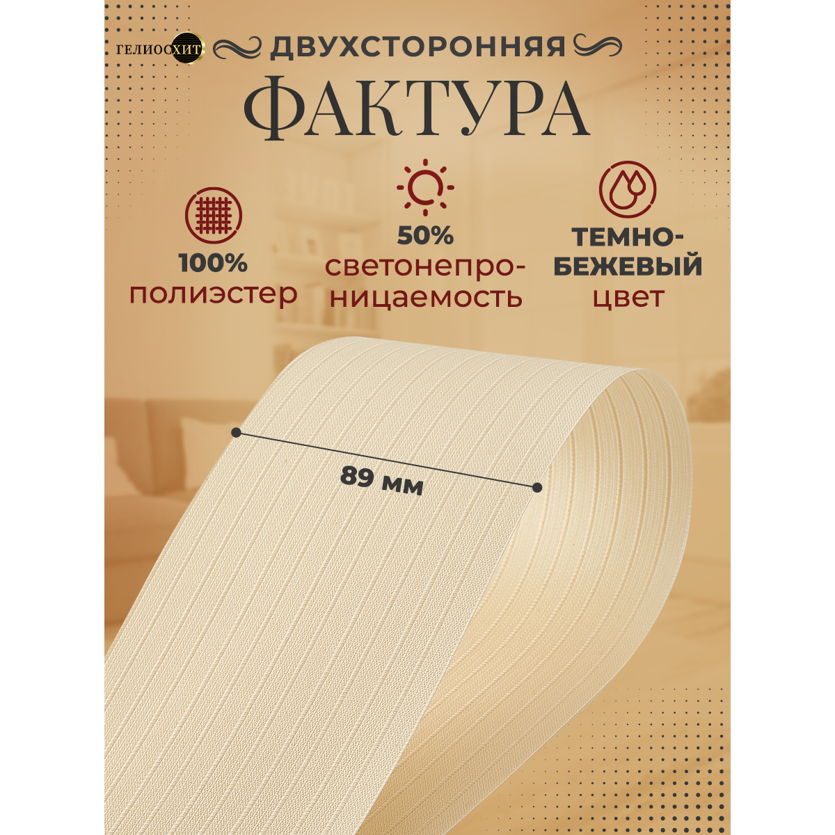 СохранитьЛамели для вертикальных жалюзи 10 шт высотой 205 см темно-бежевого цвета, карниз приобретается отдельно, гелиосхит. интересное: