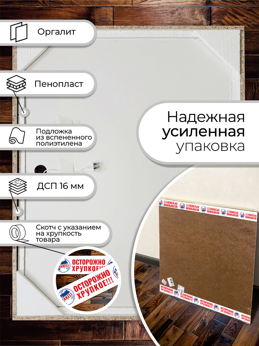 Настенное зеркало Makeli с подсветкой "Топаз", 85 х 68 см, без рамы
