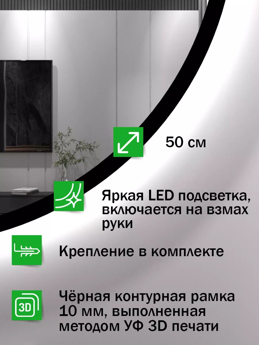 Зеркало настенное с подсветкой черная окантовка 50 см