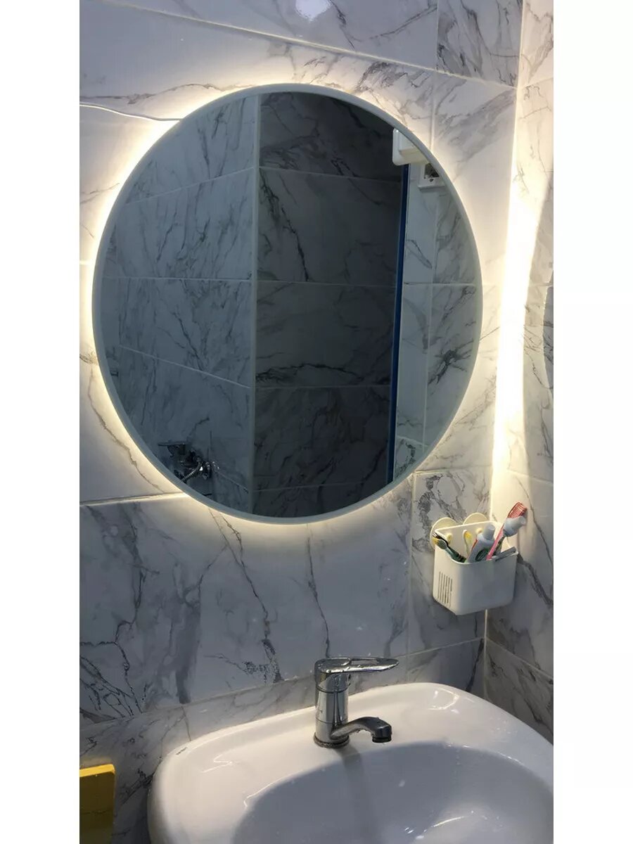 Зеркало настенное с подсветкой с белой окантовкой 70 см