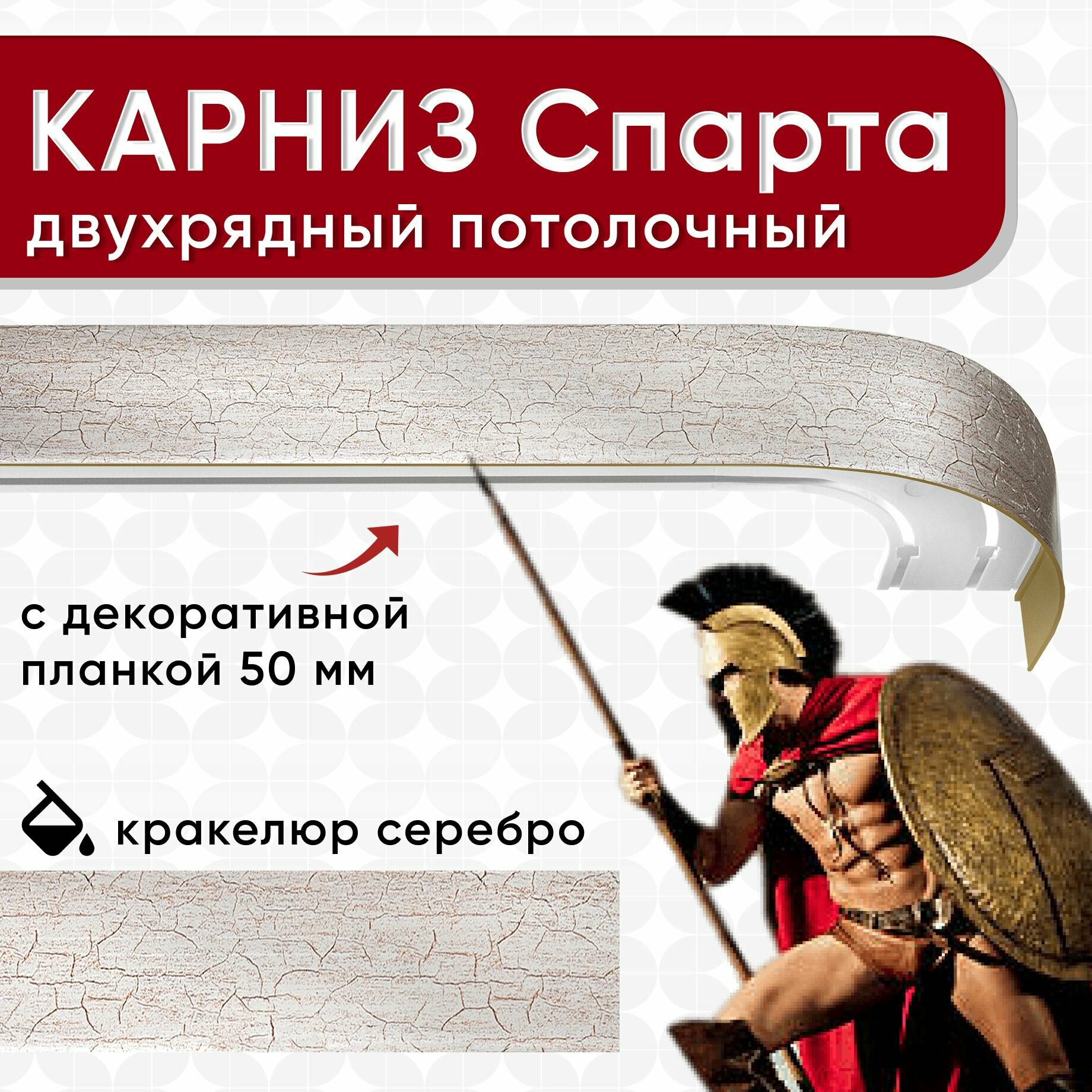 Карниз двухрядный Уют потолочный с блендой 50 мм, шинный, Спарта серебро айвори 160 см