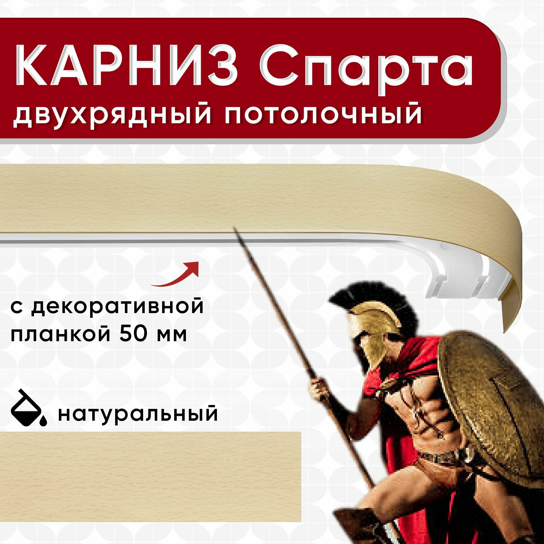 Карниз двухрядный Уют потолочный с блендой 50 мм, шинный, Спарта натуральный 180 см