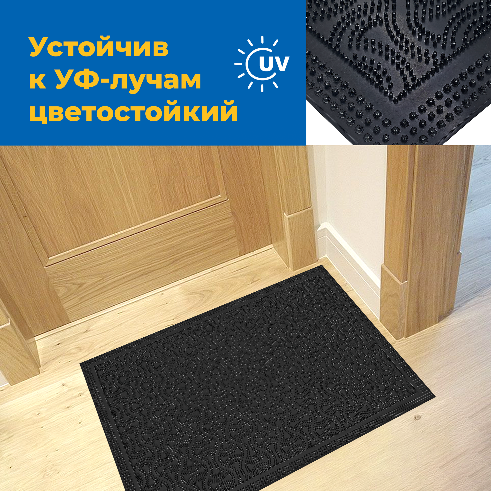 Коврик придверный резиновый в прихожую для обуви и входной двери черный. Коврик дверной 40х60 см в коридор на пол для прихожей на резиновой основе.