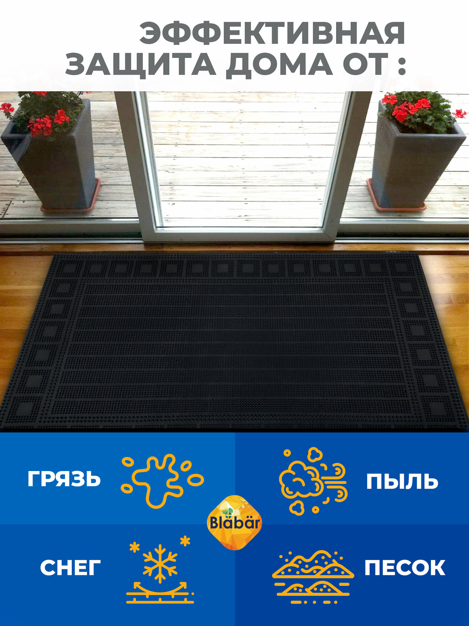 Коврик придверный резиновый чёрный Blabar 40 x 60см