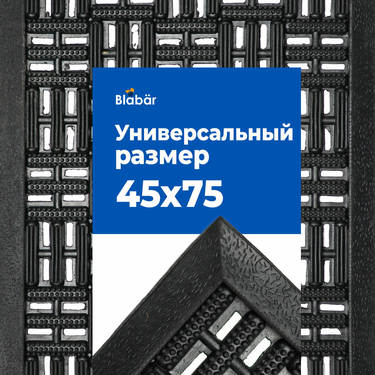 Коврик резиновый придверный 45 Х 75 черный Blabar с узором "Игольчатый"