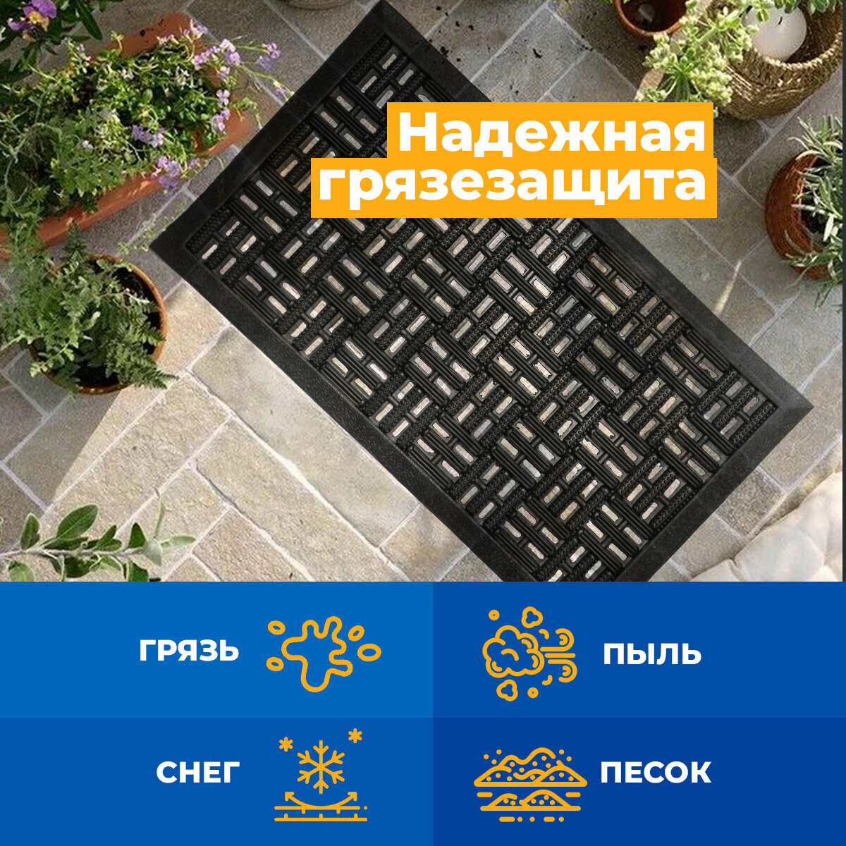 Коврик входной грязезащитный 40х60 см, резиновый, противоскользящий в прихожую.