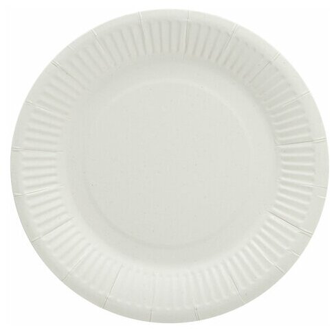 Тарелка одноразовая бумажная 180 мм, Комплект 100 шт., Бюджет, белая мелованная, Laima, 608083