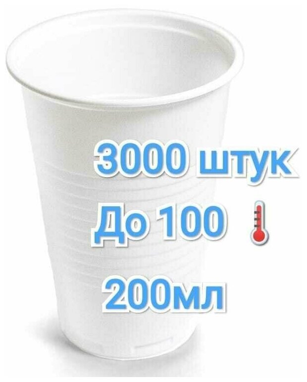Купить Стаканы одноразовые пластиковые Комус, для горячих напитков, 200 мл, 3000 штук, белые
