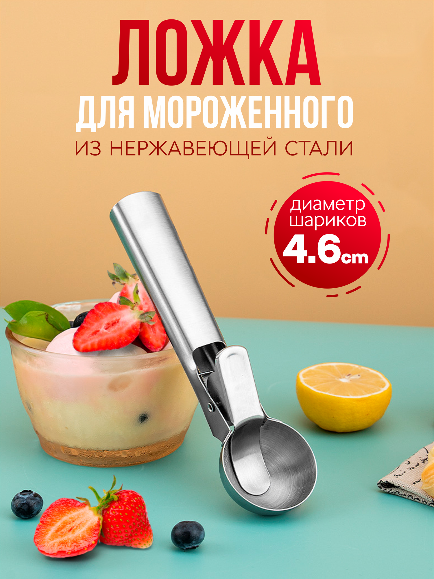 Ложка металлическая для мороженого шарик, ложка дозатор с ручкой для мороженного интересное: