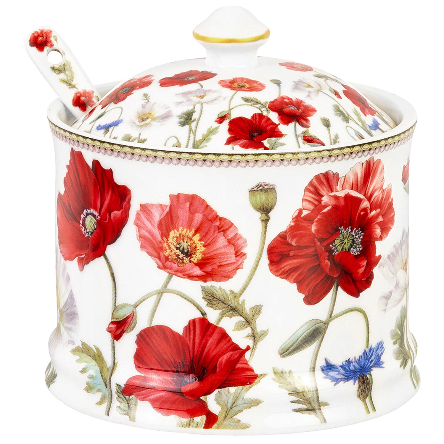 Купить Сахарница 250 мл 9х9х10 см Elan Gallery Маки, с крышкой, с ложкой