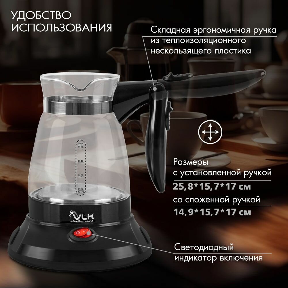 Кофеварка электрическая / турка для кофе VLK VENICE-6006, 800 Вт, защита от перегрева, 0,5 л интересное: