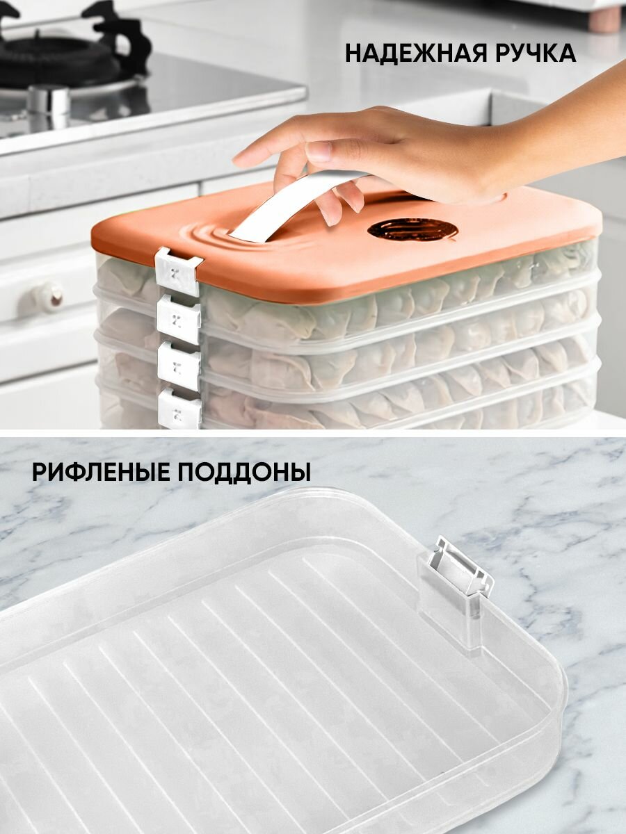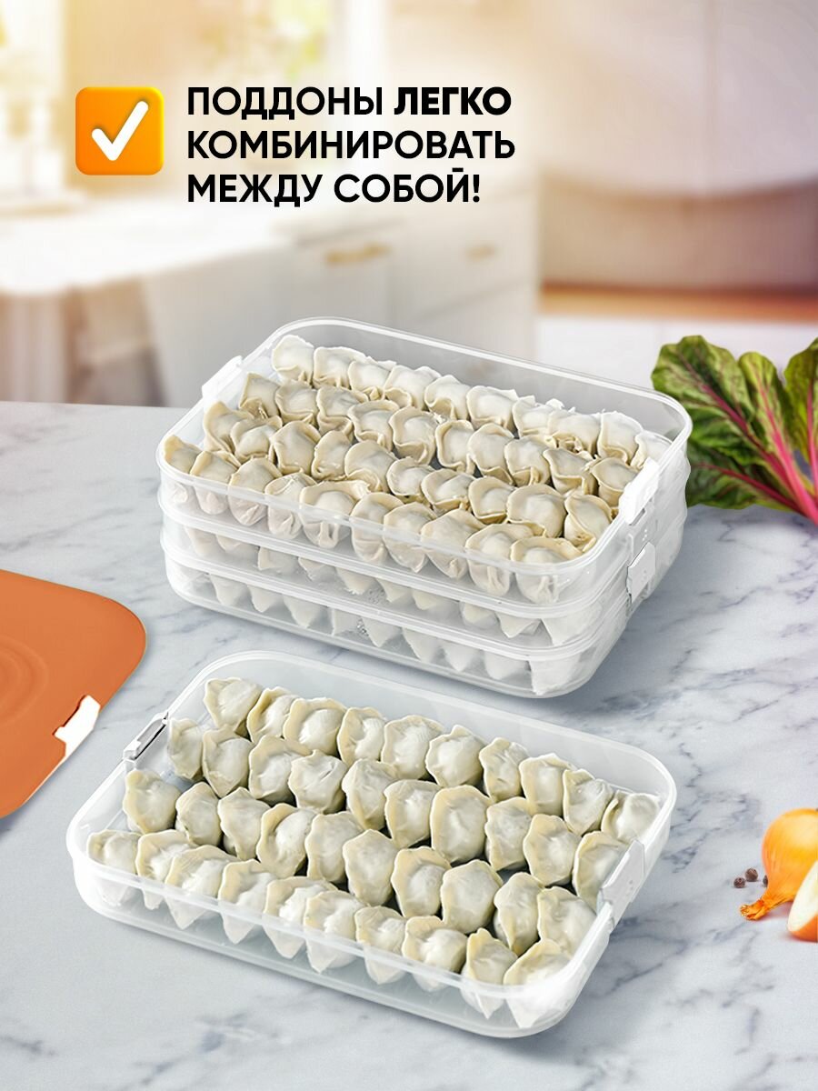 Купить Контейнер для хранения и заморозки пельменей / емкость с крышкой и ручкой пищевая / герметичный лоток для продуктов пластиковый