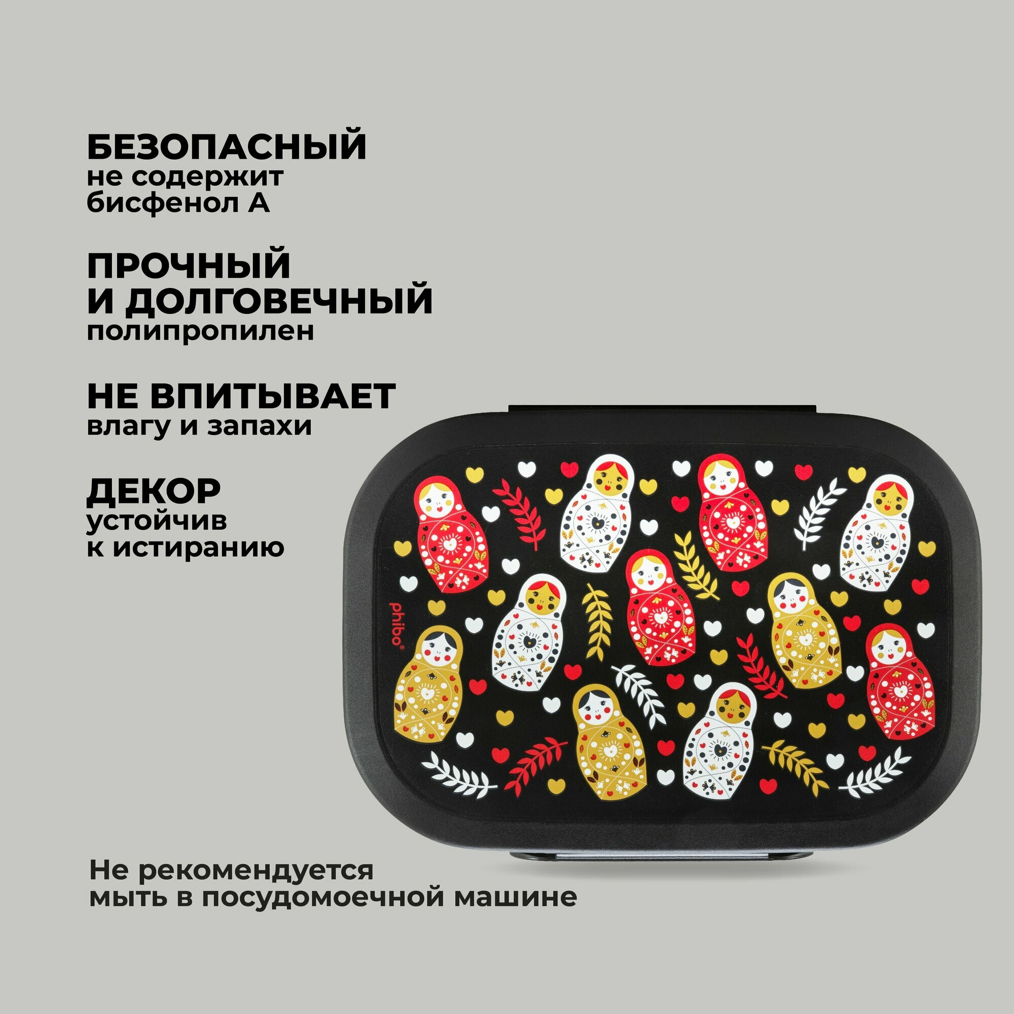 Купить Ланч-бокс с декором "Матрешки", контейнер для перекусов 980 мл, черный