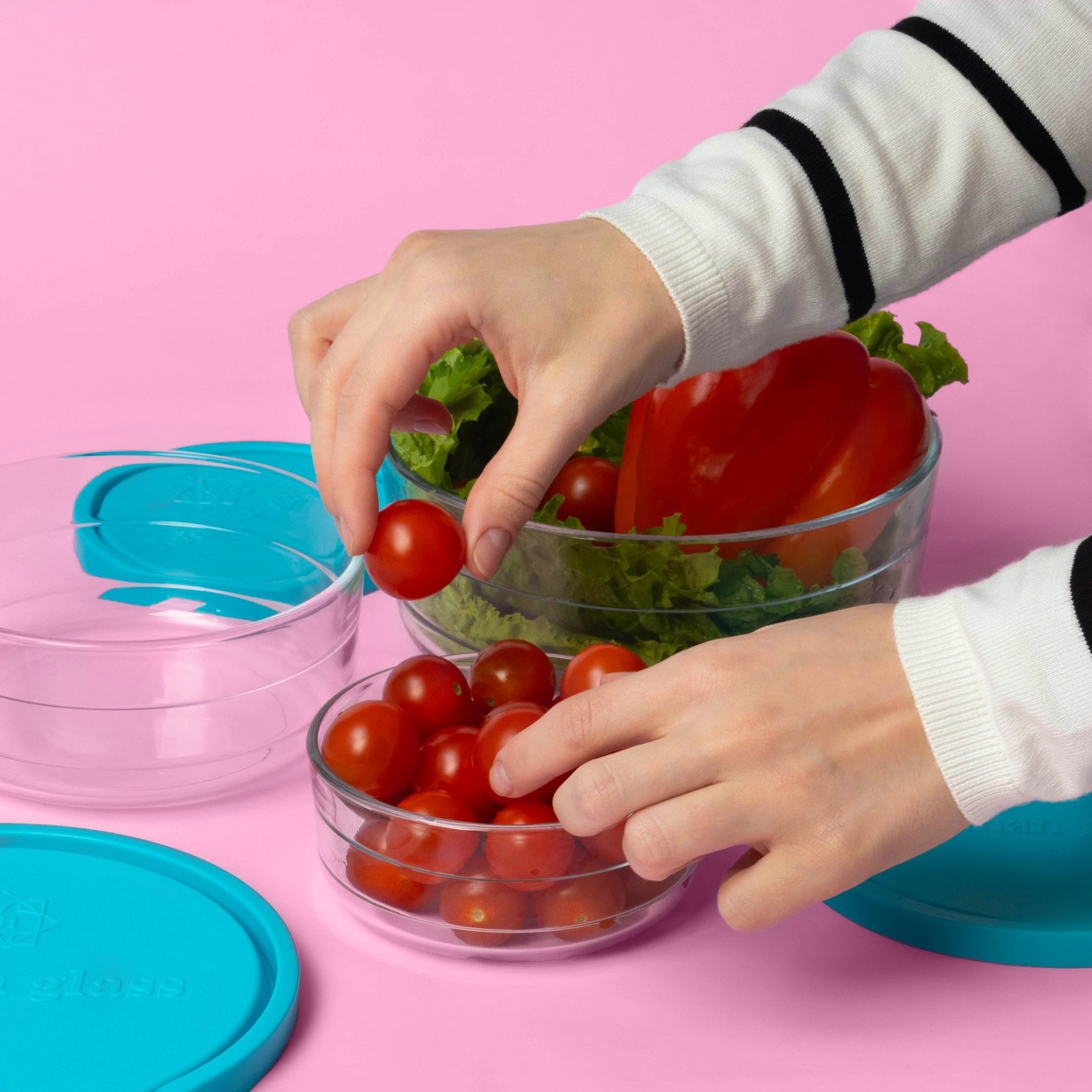 Набор салатников "Дена" 3 шт., стеклянн. голубая крышка. 1500/800/400мл Авторское стекло 9621781
