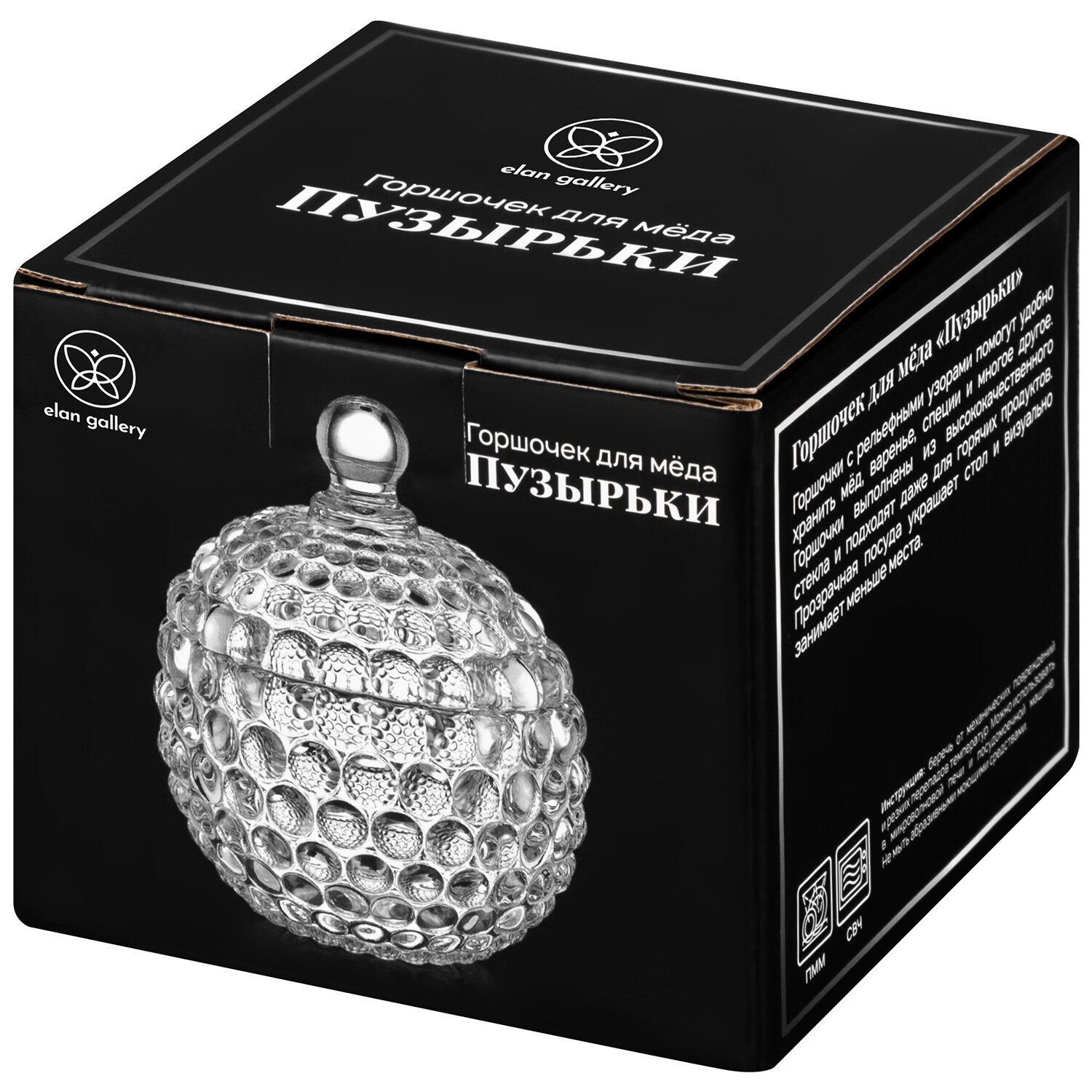 Горшочек для меда, для варенья 300 мл Elan Gallery "Пузырьки", 11*11*13,5 см интересное:
