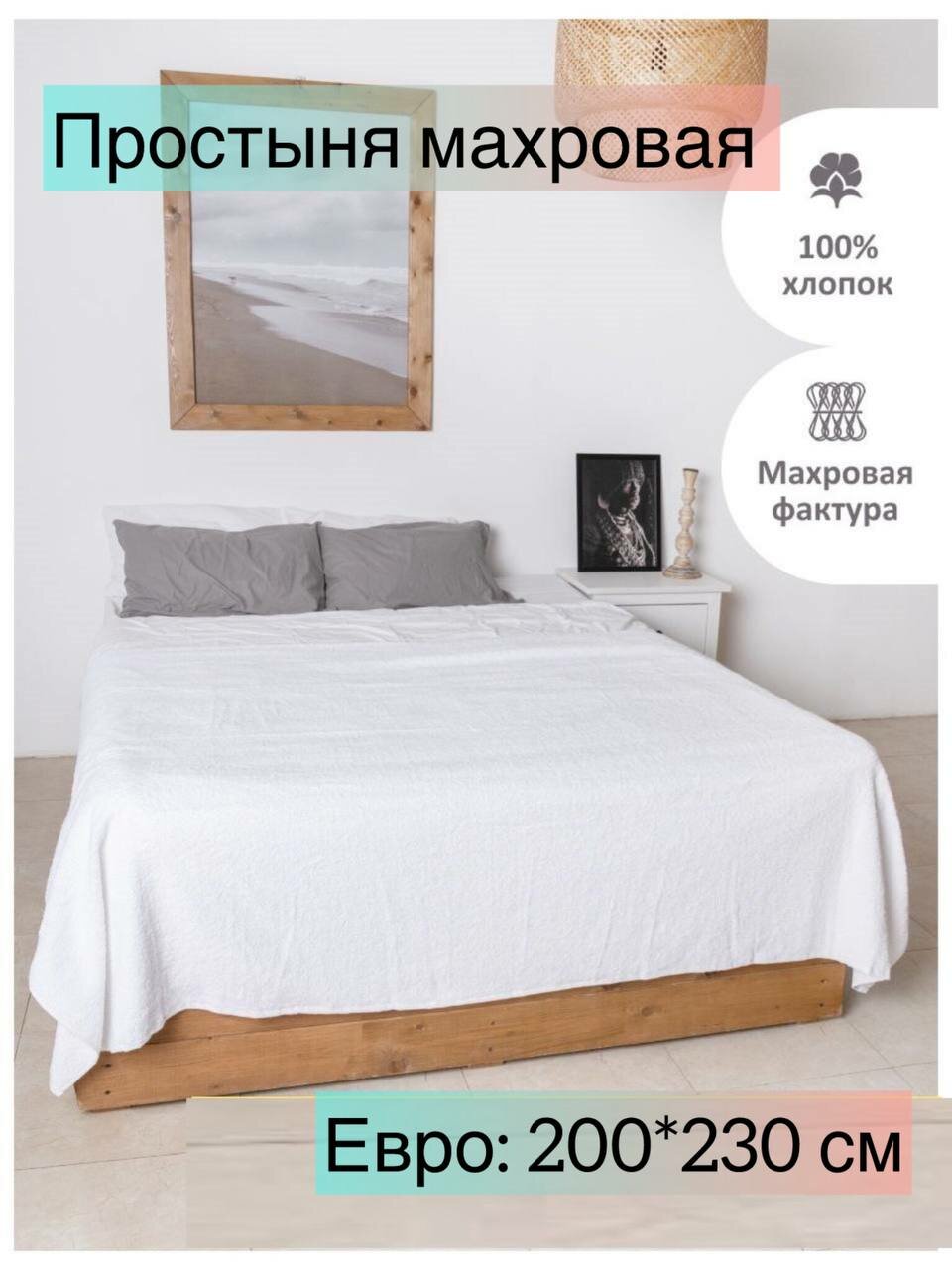 СохранитьПокрывало на кровать евро 200x230 см, махровая простыня, цвет: белый интересное:
