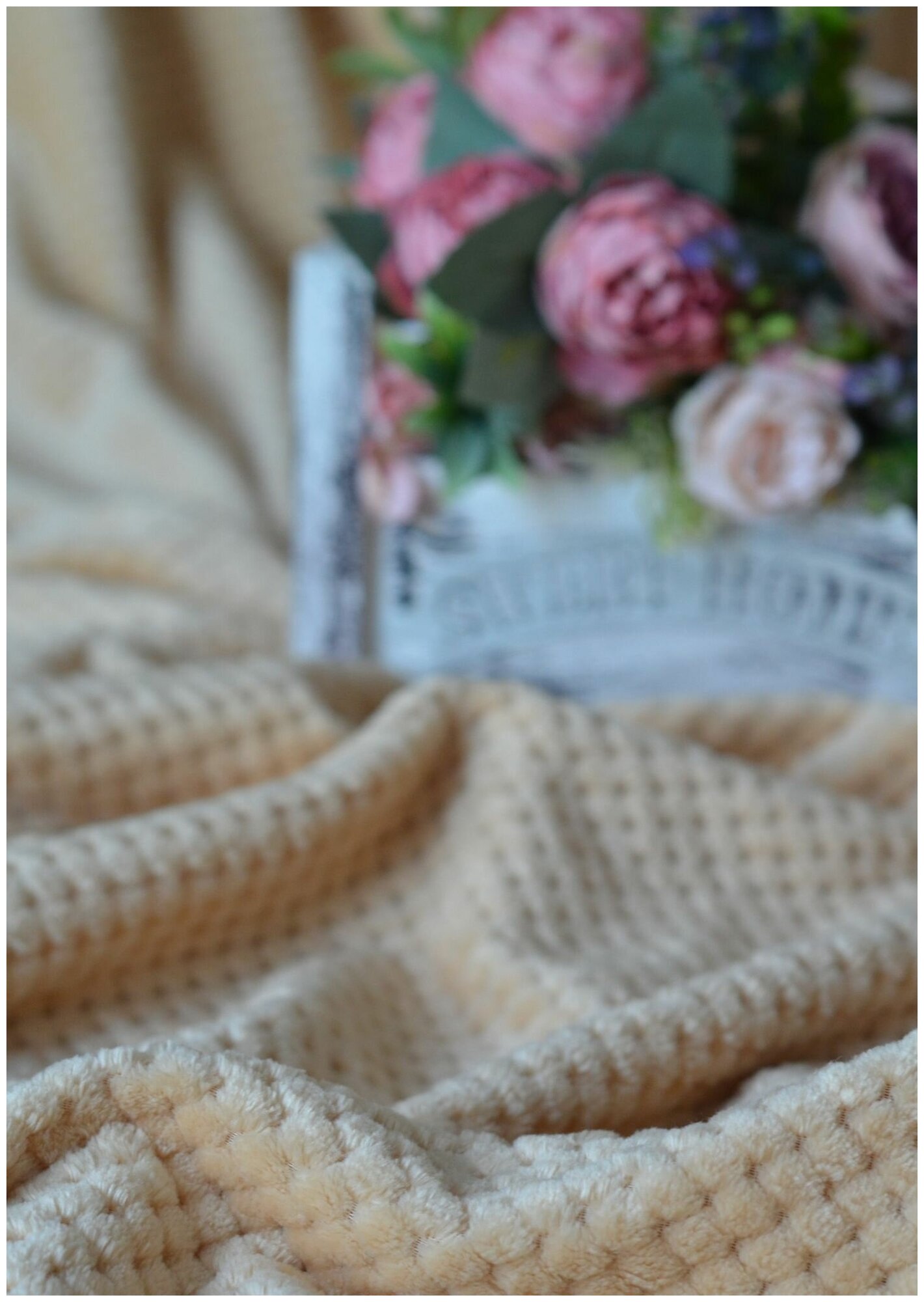 Плед IRIS. Флисовый плед 150x200 на кресло кровать в детскую и спальню покрывало в дом гостиную для всей семьи крем брюле, полуторный