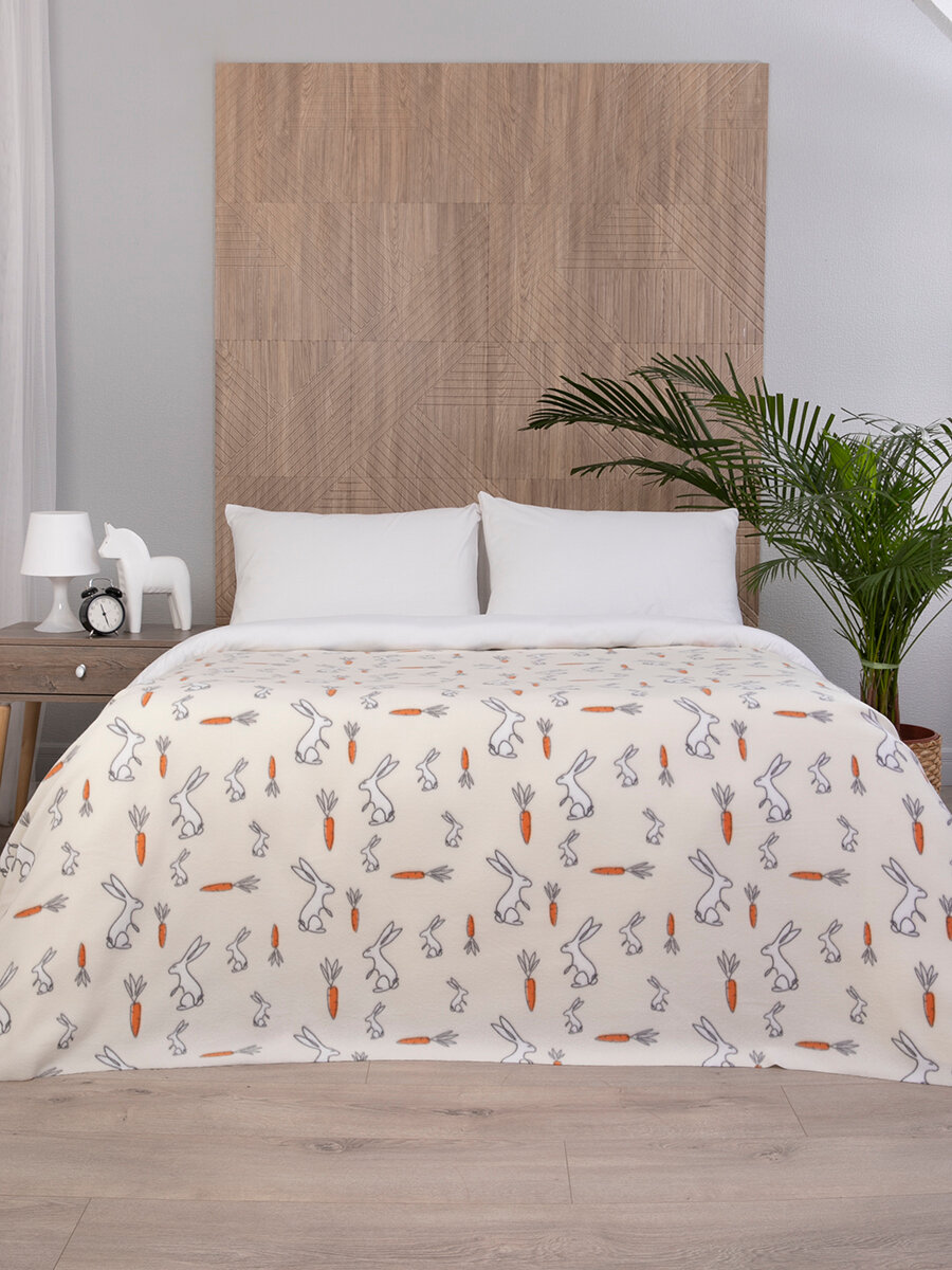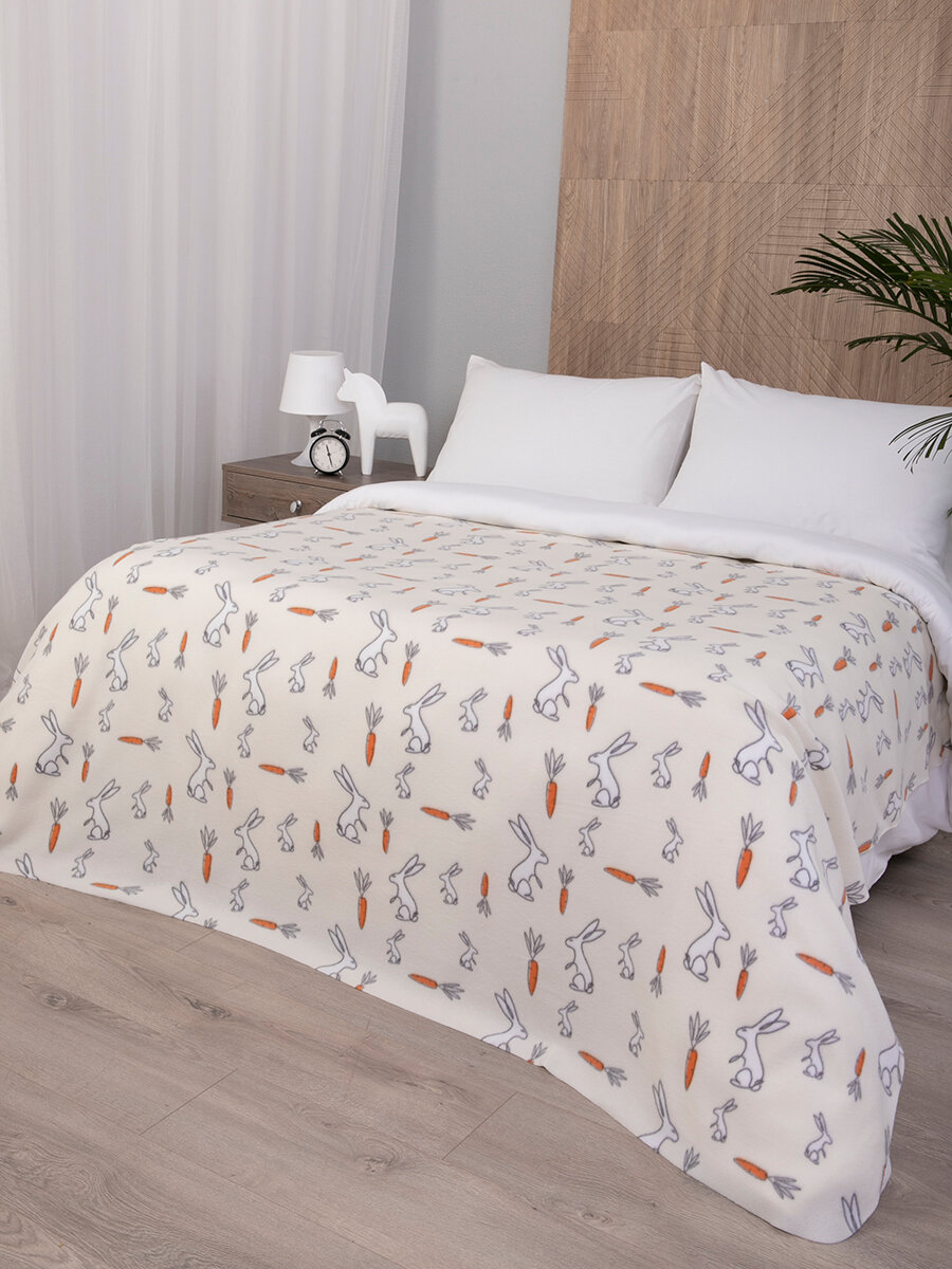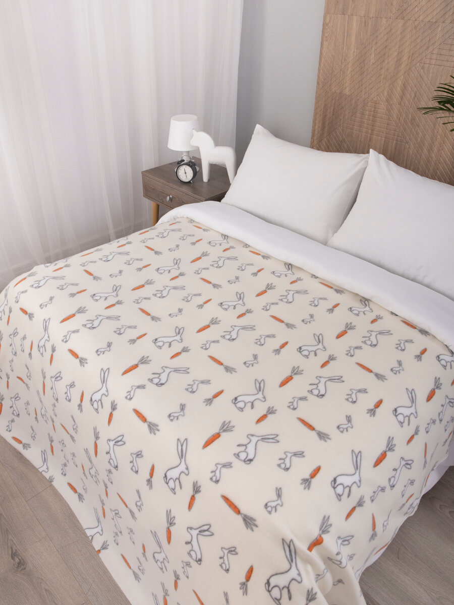 Плед флисовый 150х200 на кровать для пикника детский, "Кролики " бежевый