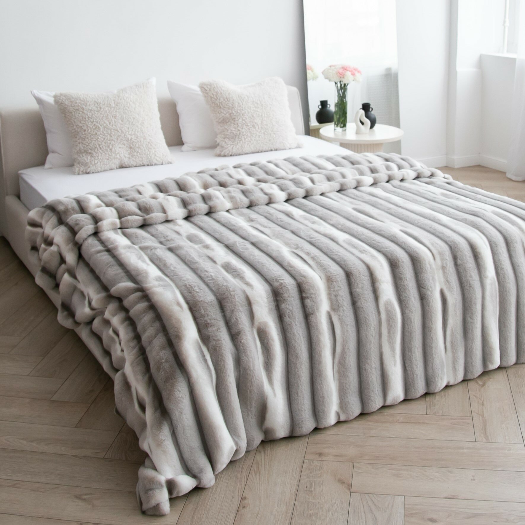 Купить Плед пушистый меховой, покрывало на кровать евро размер 200x230, плед кролик Home Atelier
