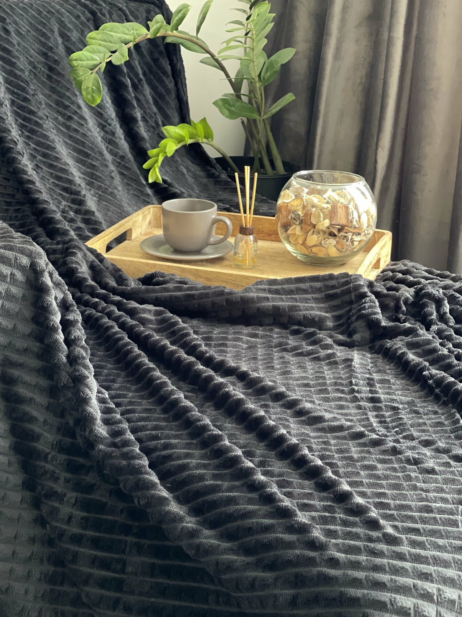 Плед - покрывало на диван Lusnug "Кубик" 200 х 220 см, графит