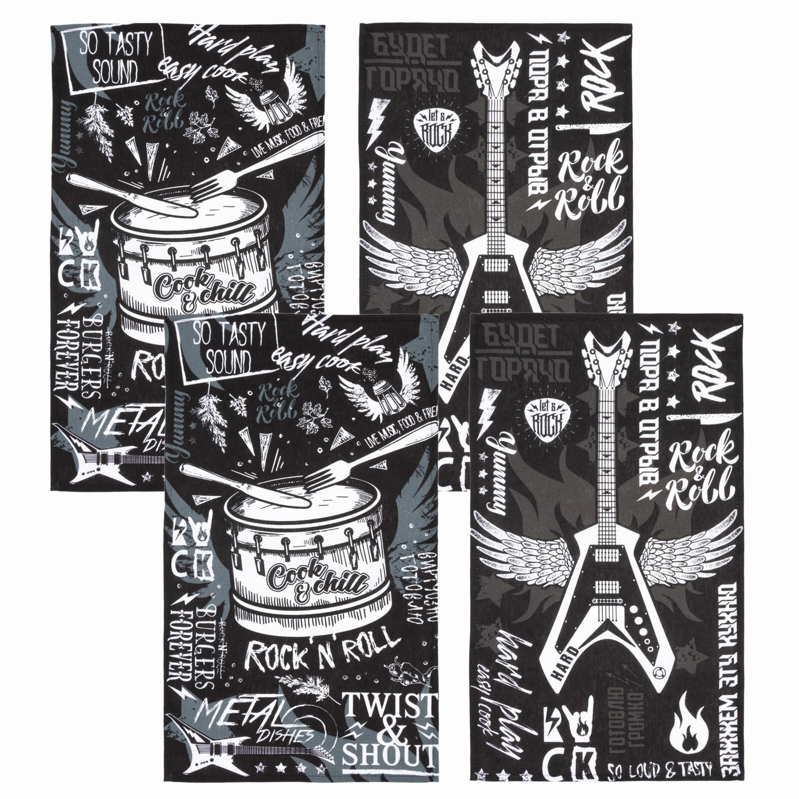 СохранитьПолотенце кухонное 4 штуки, 35х60, Доляна "Rock'n'roll" 100% хлопок интересное: