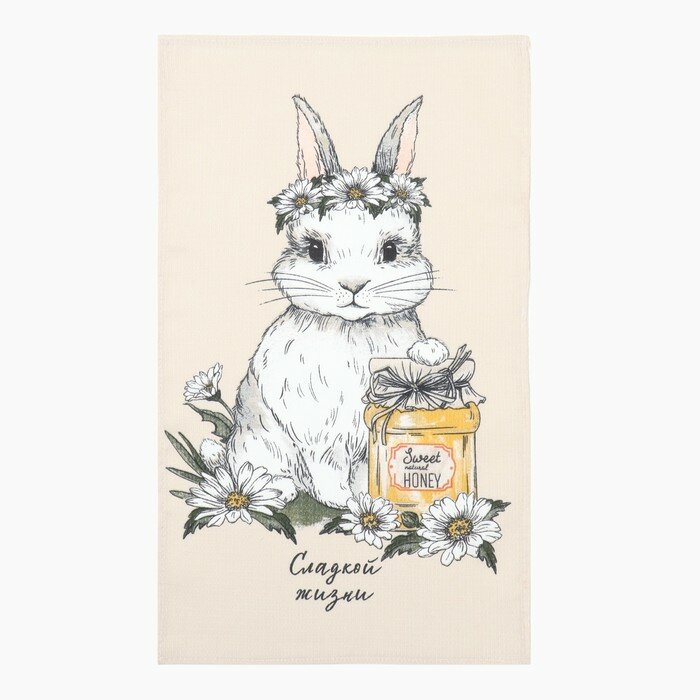 Полотенце кухонное 4 штуки, 35х60, Доляна "Пасхальные зайчики" 100% хлопок