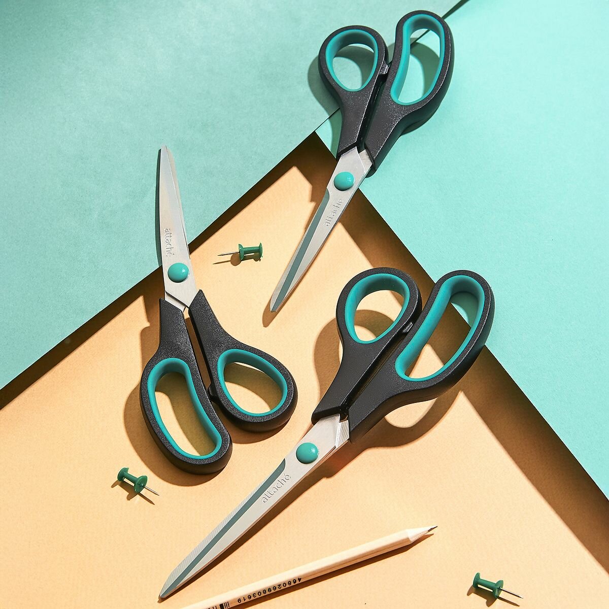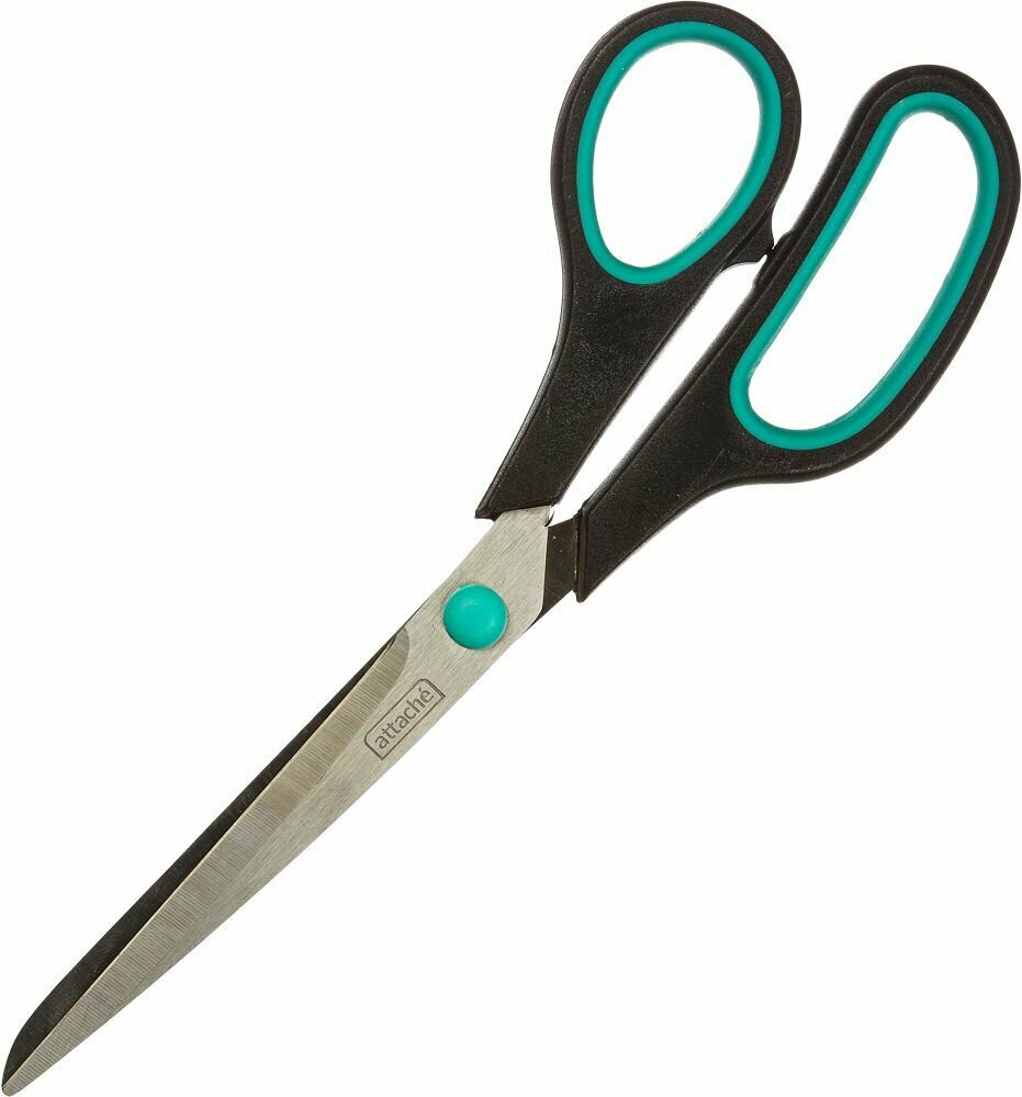 Ножницы Attache 215 мм с пластиковыми прорезиненными ручками зеленый/черный, остроконечные 262866