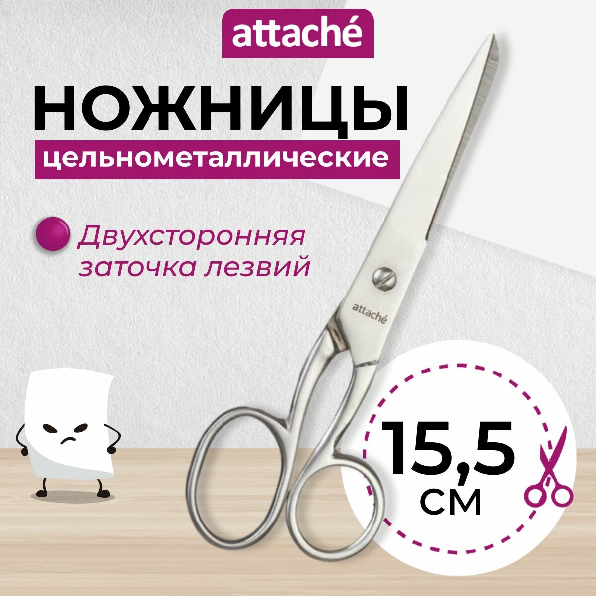 Ножницы канцелярские универсальные Attache, металлические, 15,5 см интересное: