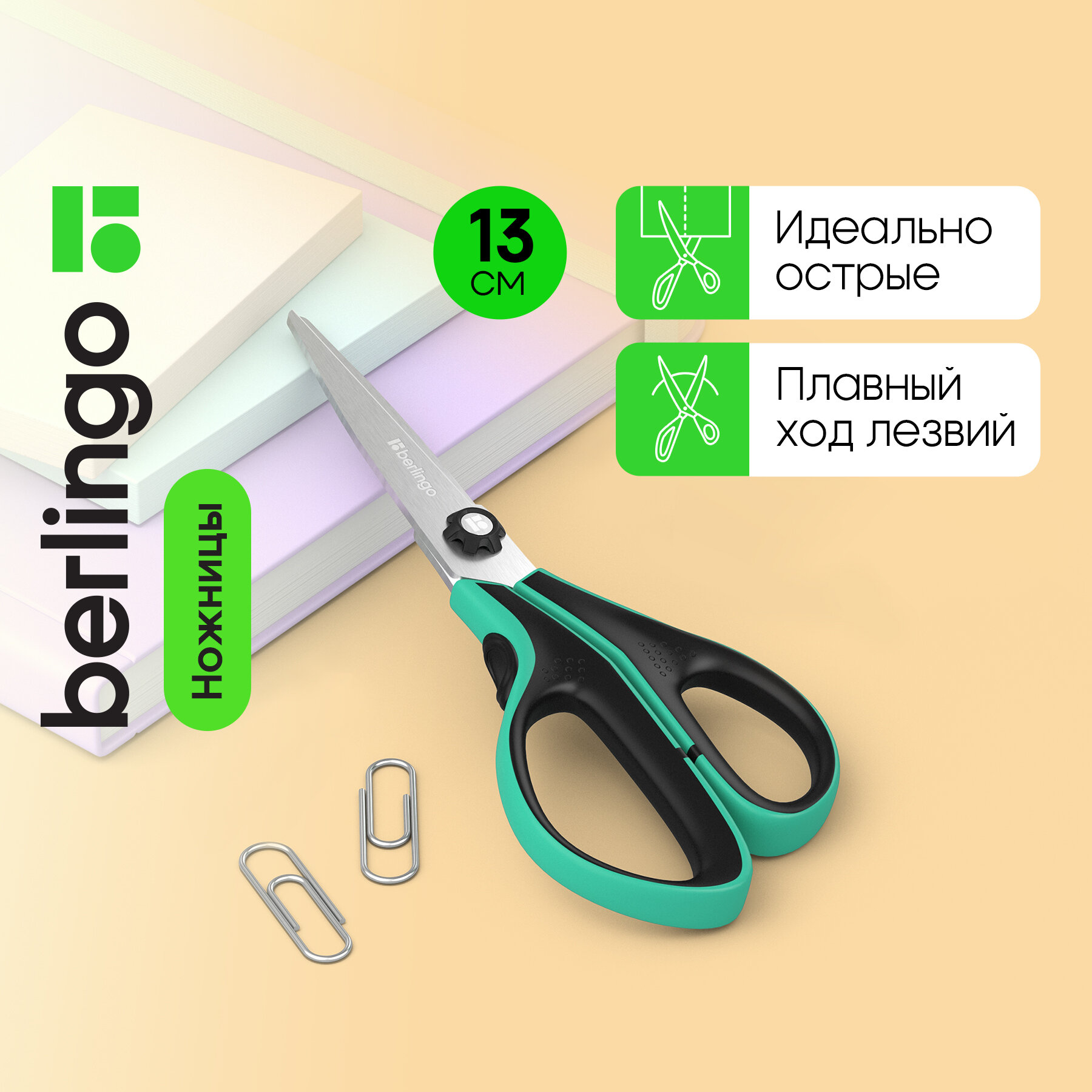 Купить Ножницы Berlingo "Easycut 350", 13см, бирюзовые, эргономичные ручки, мягкие вставки