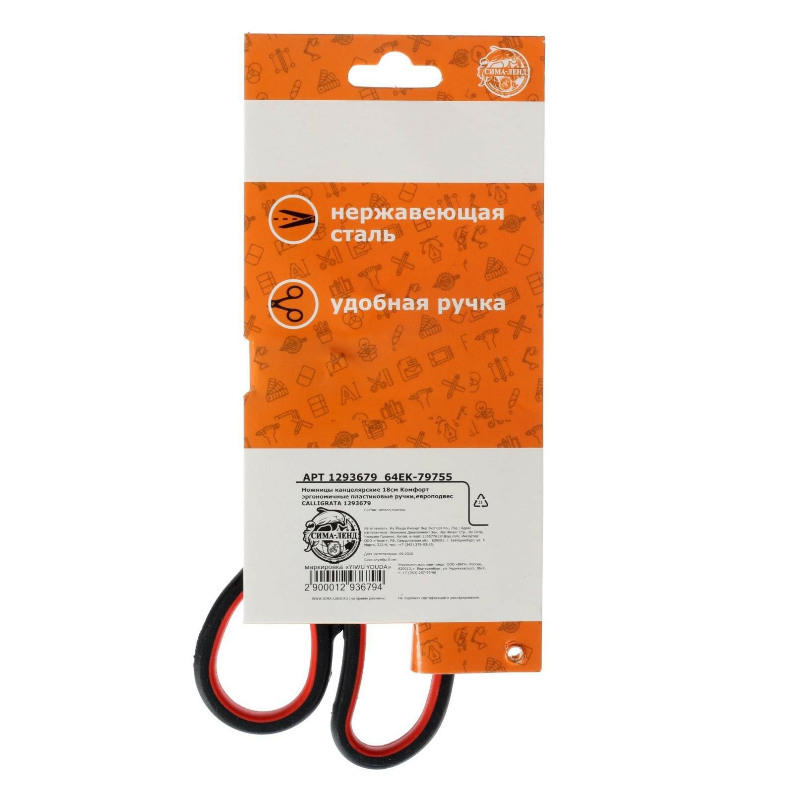Купить Ножницы "Комфорт" 18 см, эргономичные пластиковые ручки, блистер, европодвес