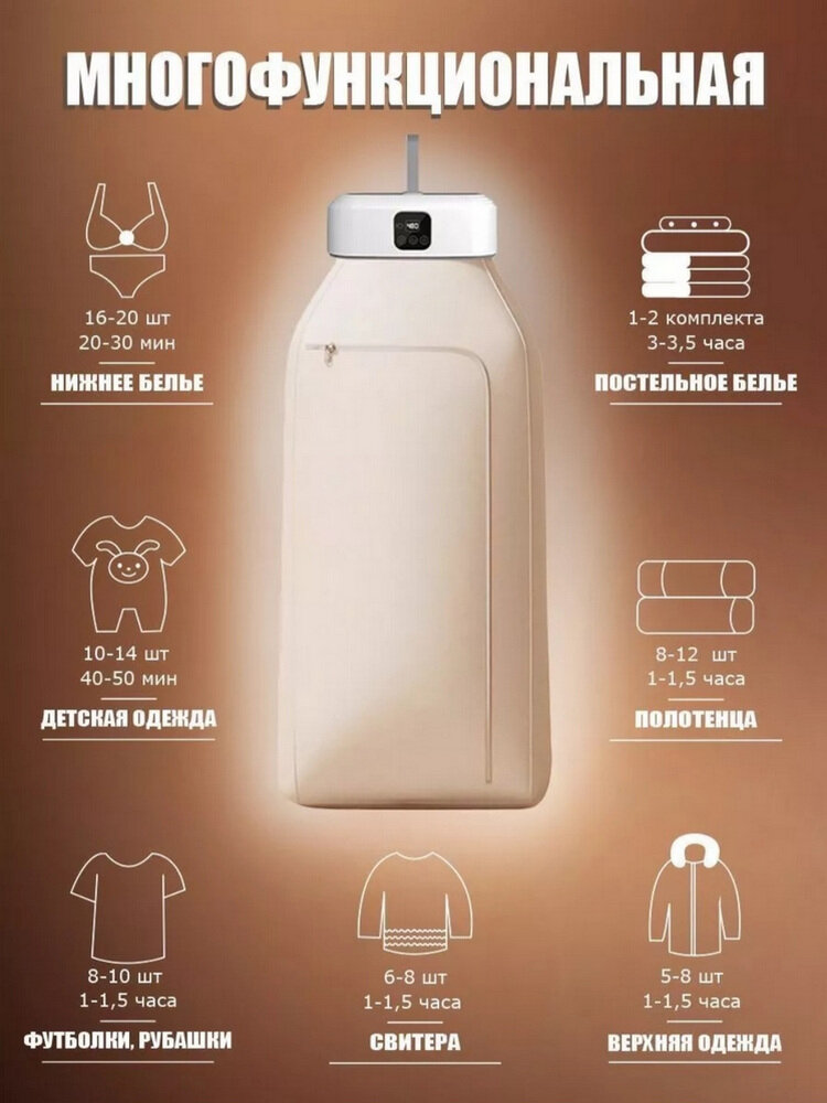 Сушилка электрическая для одежды и белья, портативная, вертикальная, с антибактериальной УФ-обработкой, дисплеем интересное: