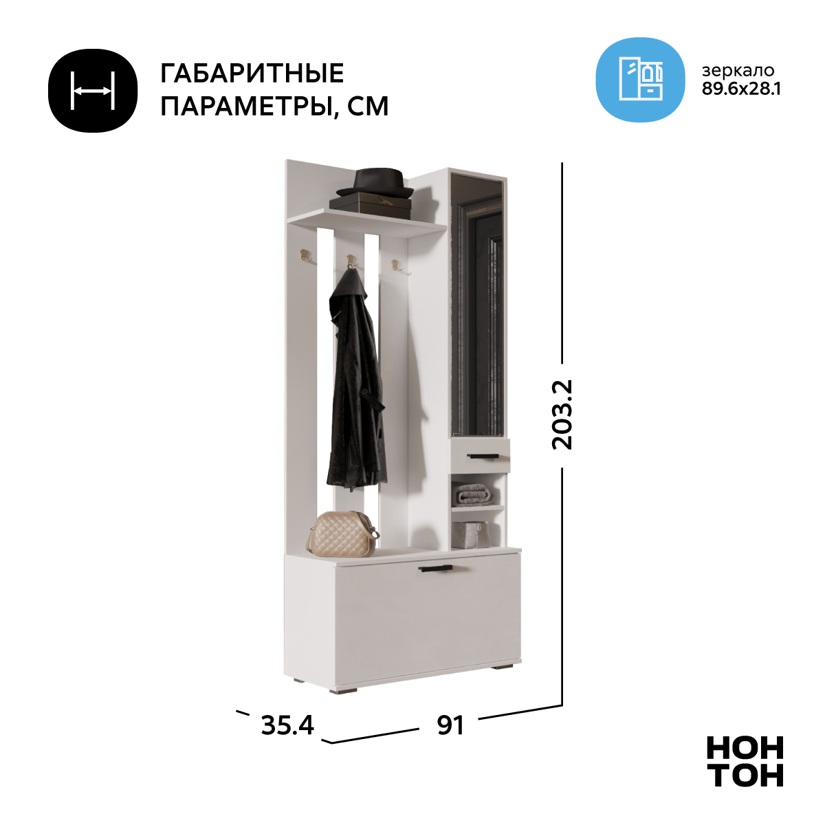 Прихожая с зеркалом Нонтон Ника белая, 91х35.4х203.2 см интересное: