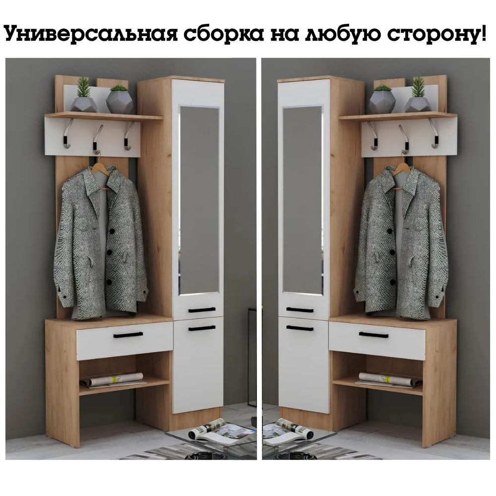 Прихожая "София", вешалка для одежды, в коридор, с зеркалом, цвет дуб вотан / белый, ЛДСП, 95*195*36 см интересное: