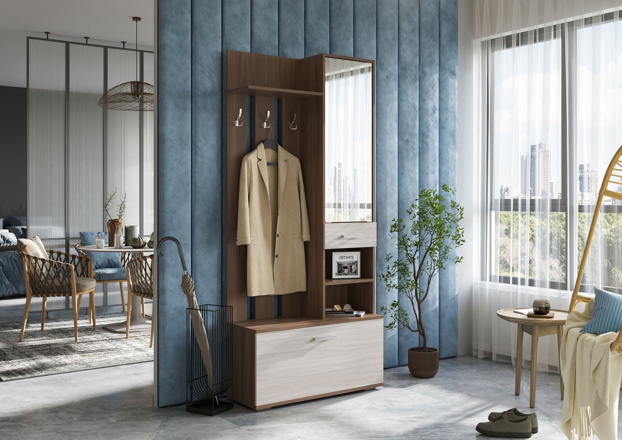 Комплект прихожей с вешалкой Стендмебель, Сорренто, 91х34х202см, венге-белфорт