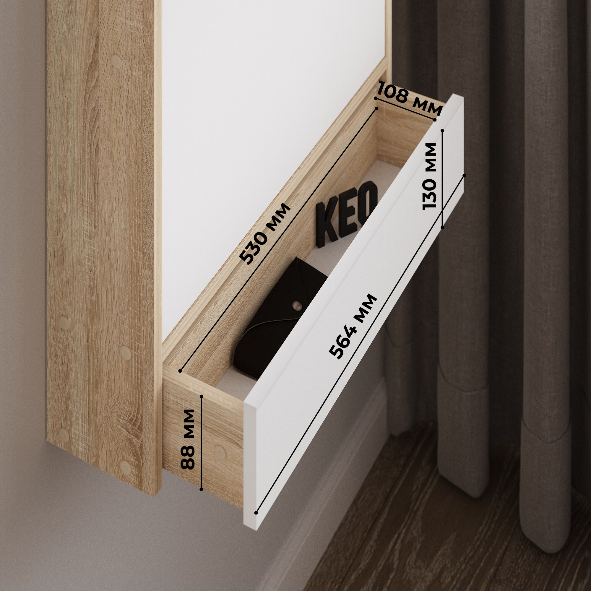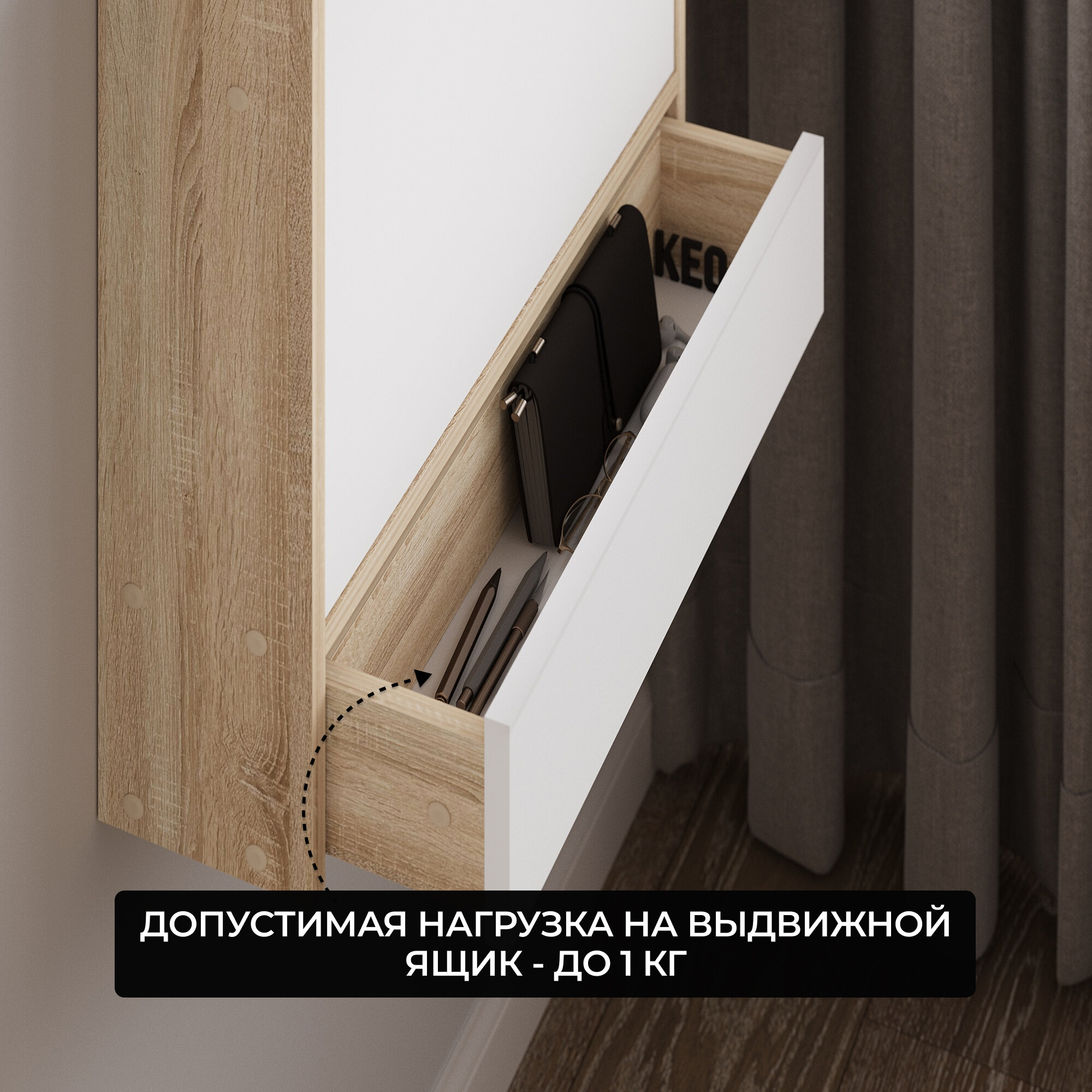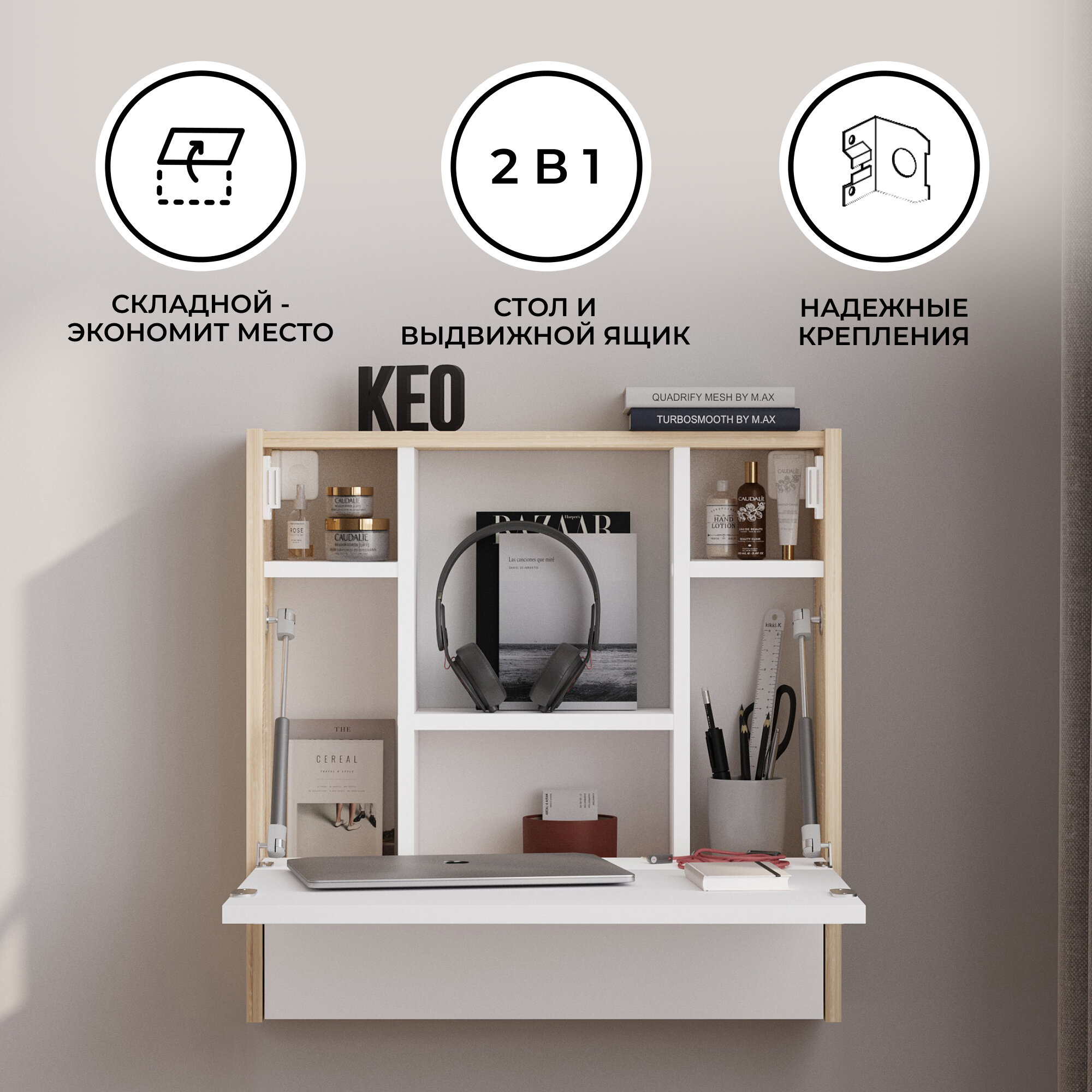 Стол подвесной письменный Кео СТM-23 белый и дуб сонома с откидной столешницей и выдвижным ящиком для школьников для ноутбука для дома