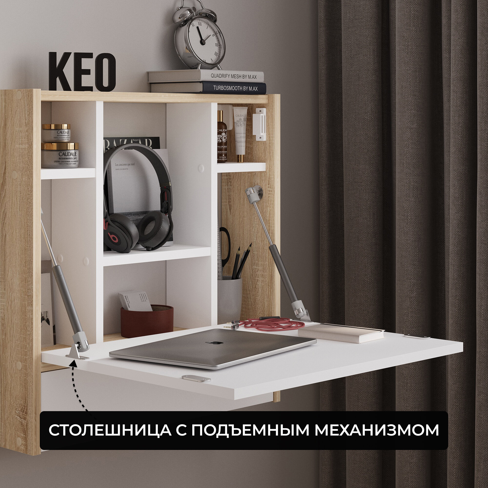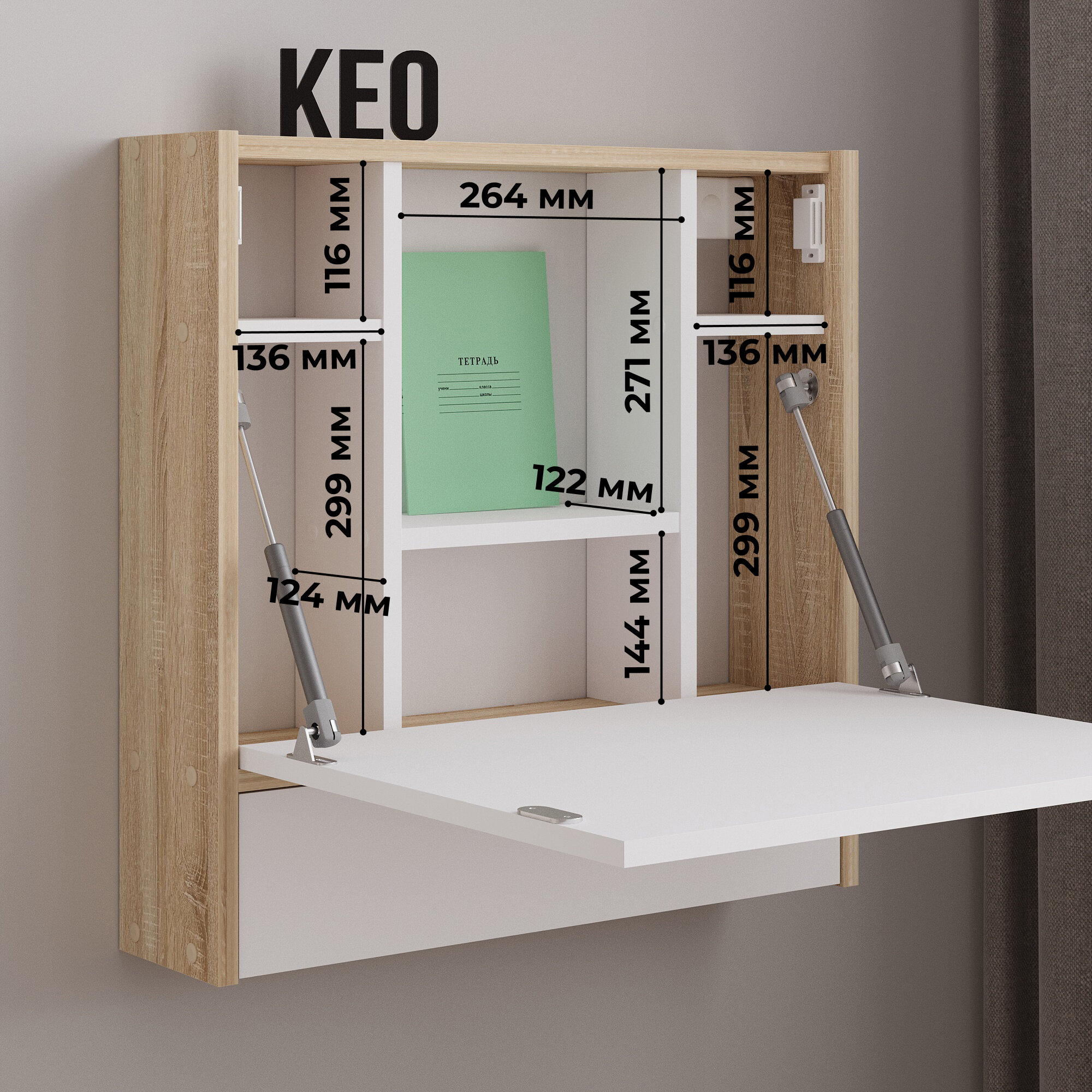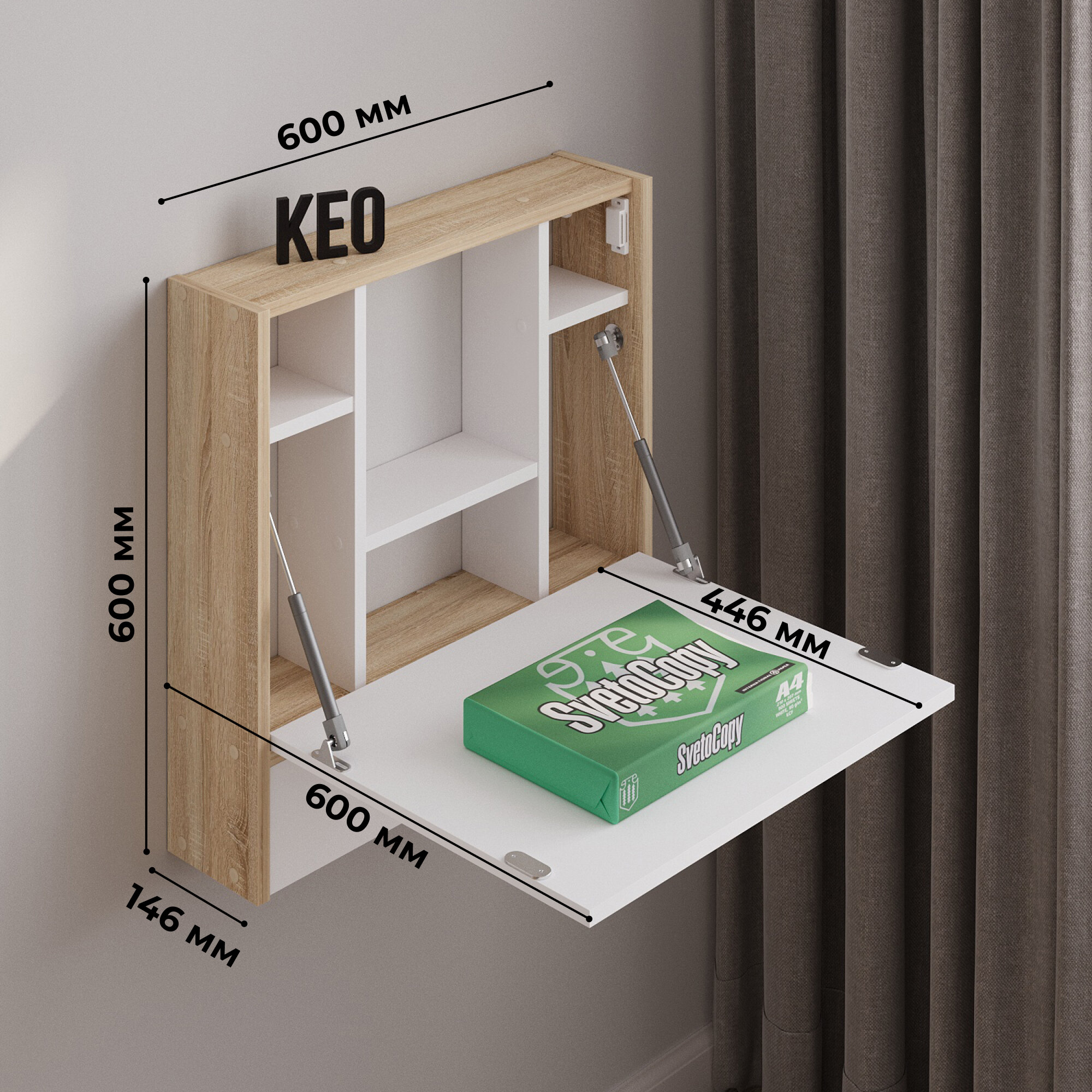Стол складной 60х60х14,6 подвесной (навесной) письменный трансформер с откидной столешницей, выдвижным ящиком и полками секретер Кео СТМ-23 дуб сонома