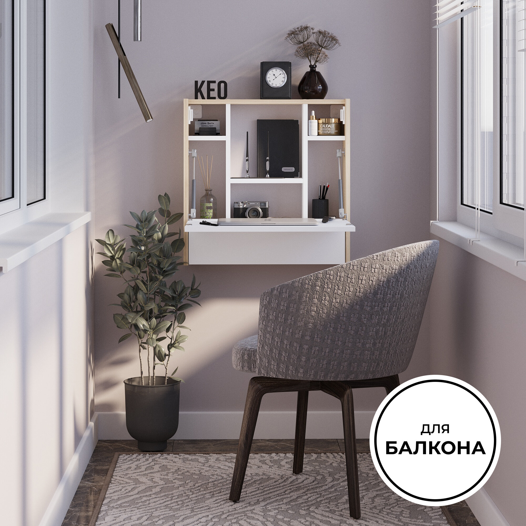 Стол складной 60х60х14,6 подвесной (навесной) письменный трансформер с откидной столешницей, выдвижным ящиком и полками секретер Кео СТМ-23 белый