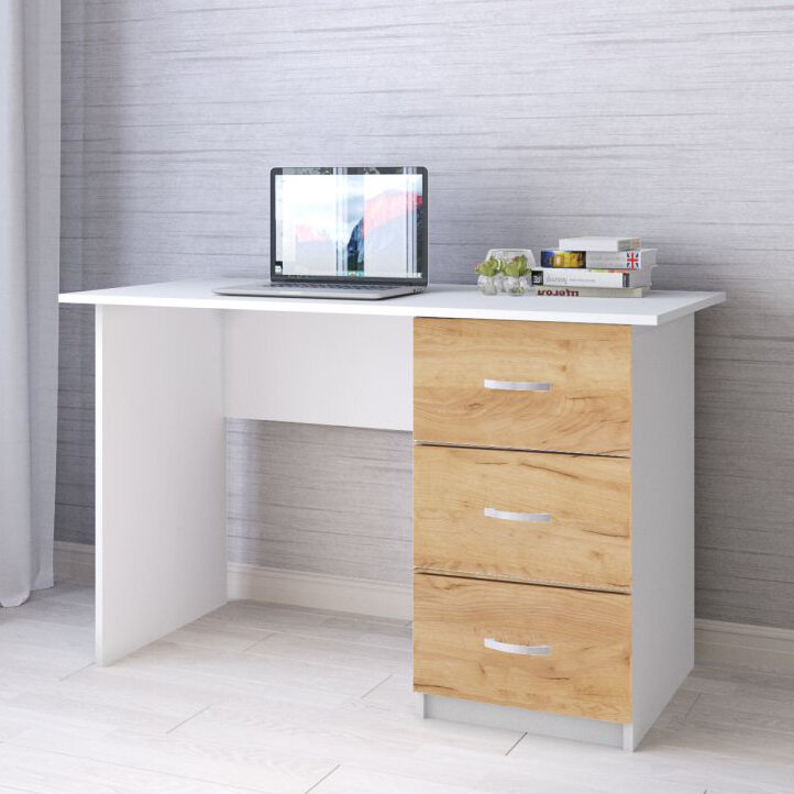 Стол письменный Сити-1, Белый с тиснением "Древесные поры"/Дуб Крафт Золотой, ЛДСП, с ящиками, для спальни, гостиной, 750х1200х600, тэкс