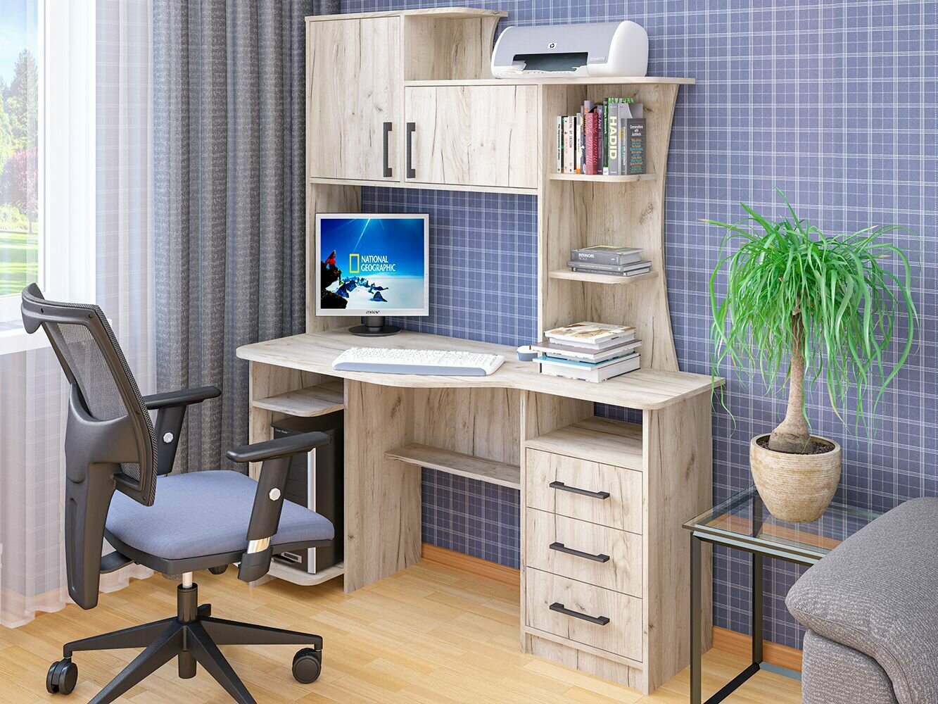 Стол компьютерный КС-62 угловой , ящиками, Дуб Крафт светлый
