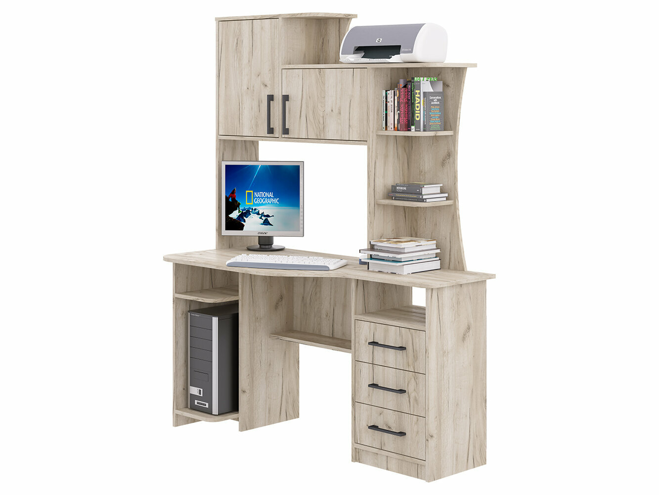 Стол компьютерный СК-19 с надстройкой и 3мя ящиками Крафт светлый