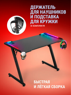 Купить Игровой стол / Компьютерный стол Defender Jupiter RGB, подвес для кружки и гарнитуры, черный