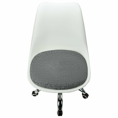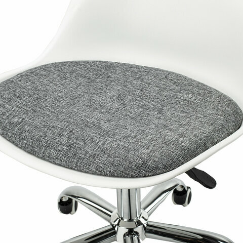 Кресло компьютерное, стул офисный на колесиках для взрослого и школьника, хром, пластик белый, ткань серая, Brabix Eames MG-310 CH, 532924