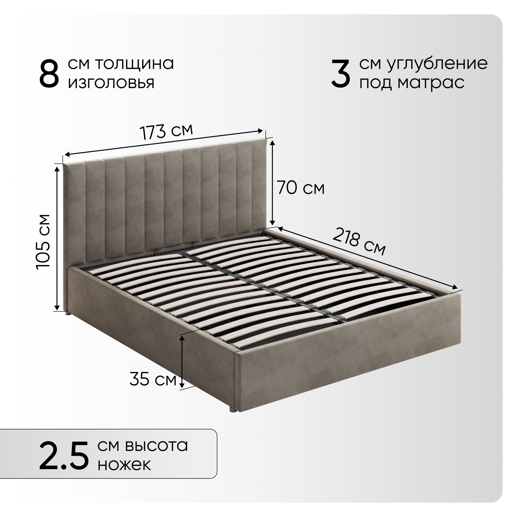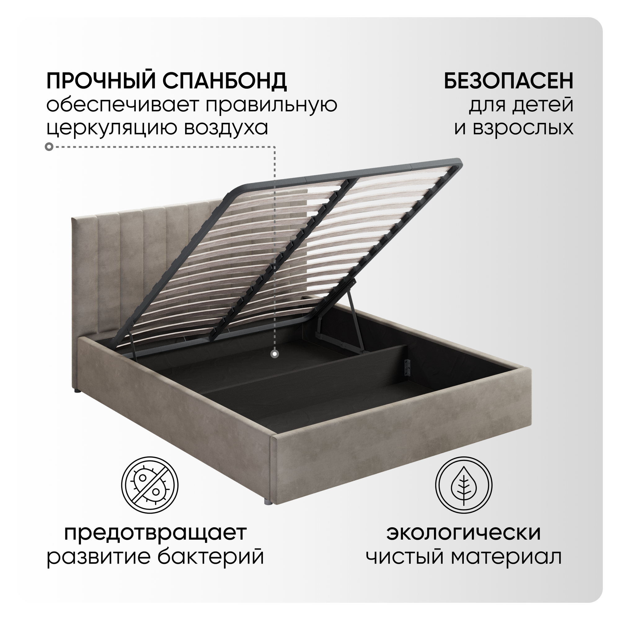 | Особенности | мягкое изголовье, с подъемным механизмом, с ящиком для белья |