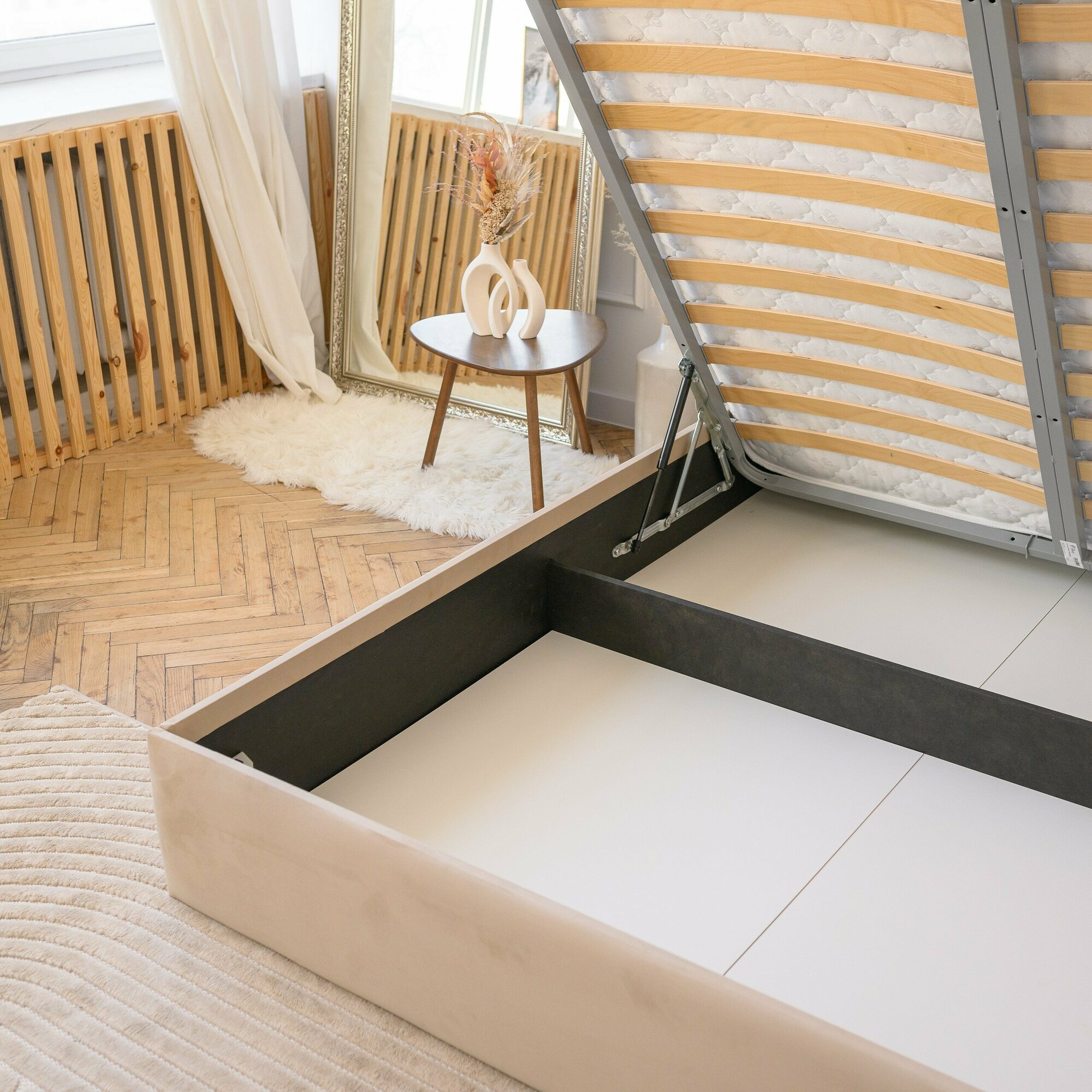 Кровать 160х200 c подъемным механизмом и бельевым ящиком Стефания бежевый